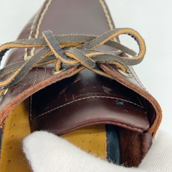 アウトソールやインソールに汚れ、甲やかかとに履きシワ、所々にキズ、かかとすり減りなど着用感がみられますが、目立ったダメージのない、比較的良好な商品です。