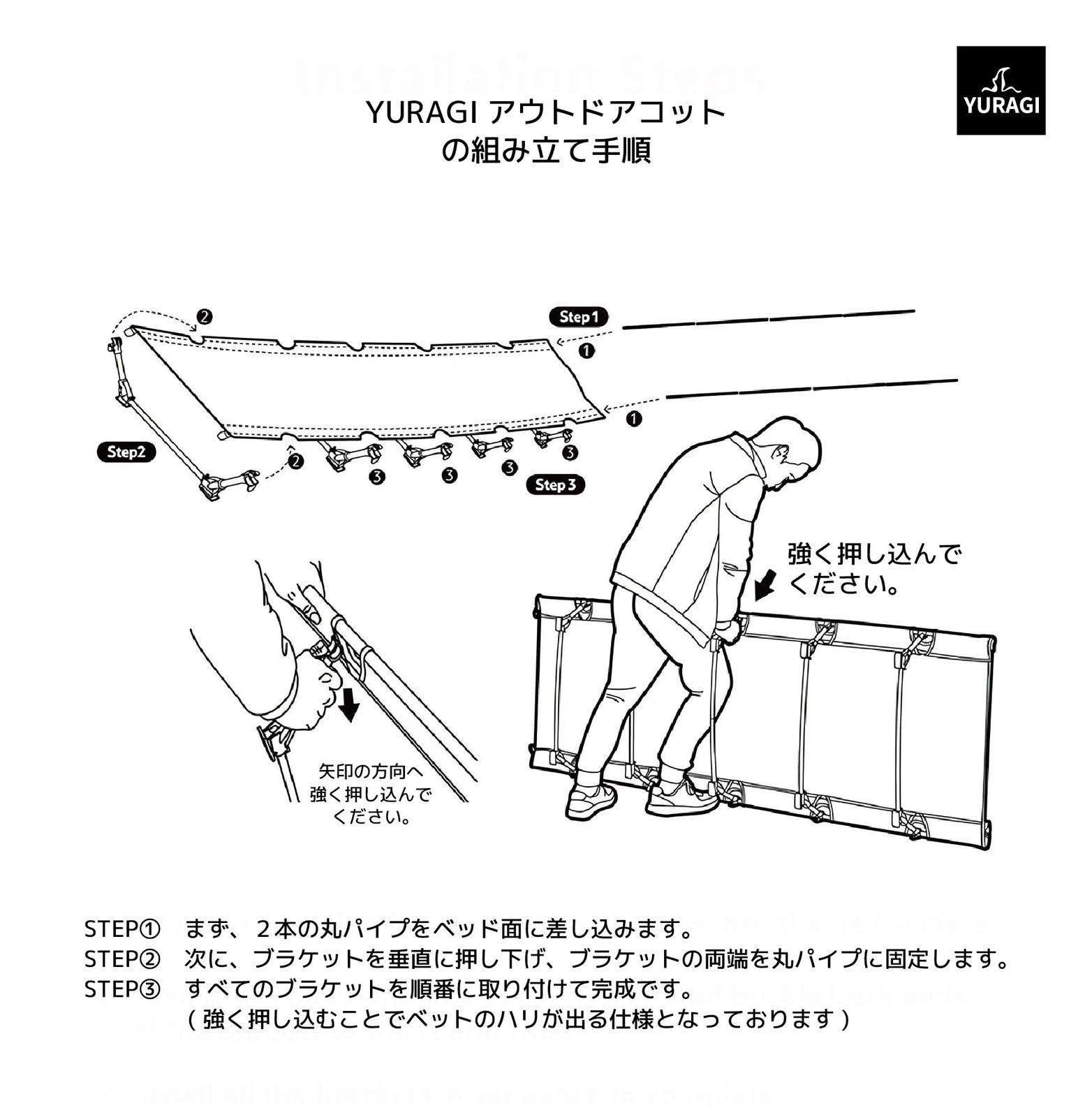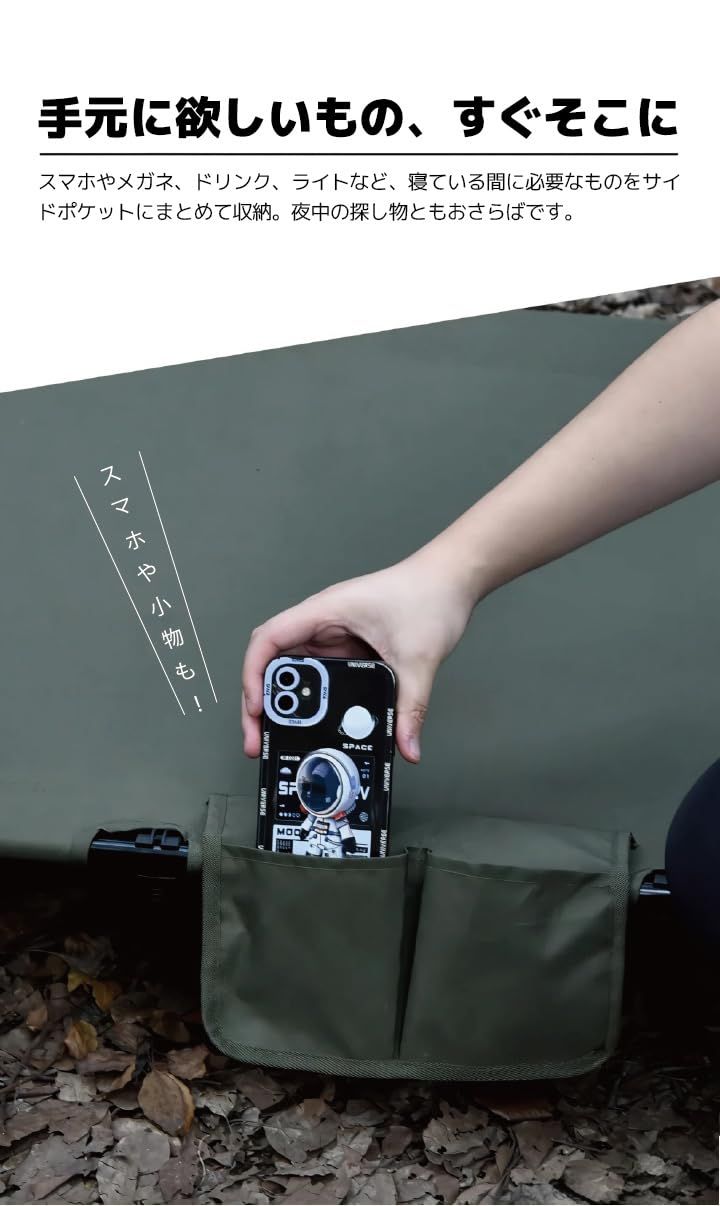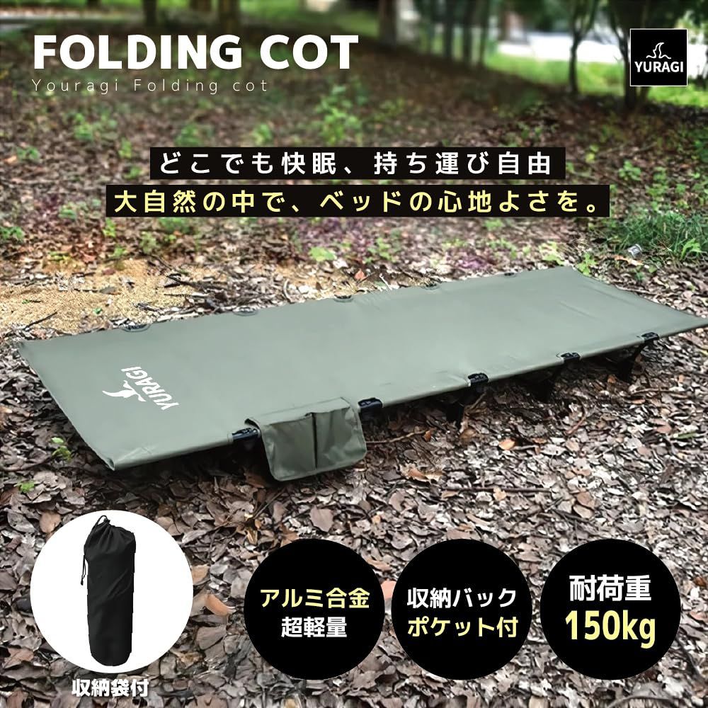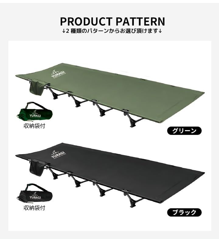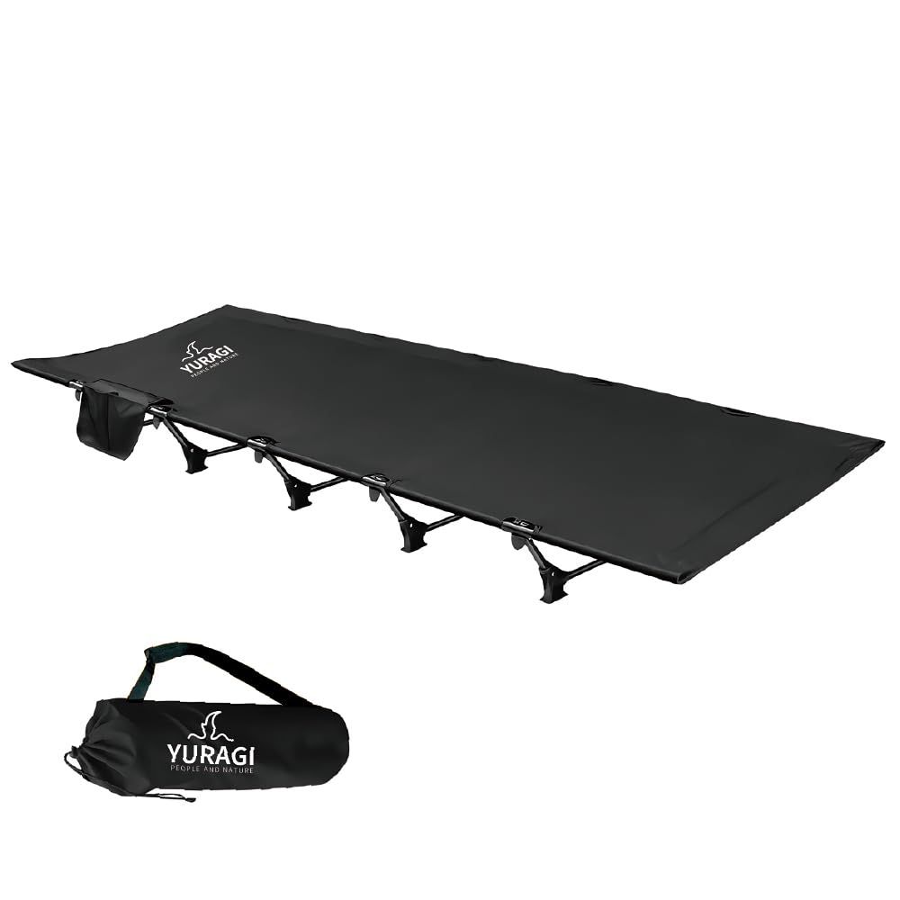 YURAGI コット アウトドアベッド 折りたたみ キャンプコット 簡易 コンパクト 超軽量 耐荷重150kg 枕 収納ケース キャリーバッグ付き 防水 通気性 (ブラック)
