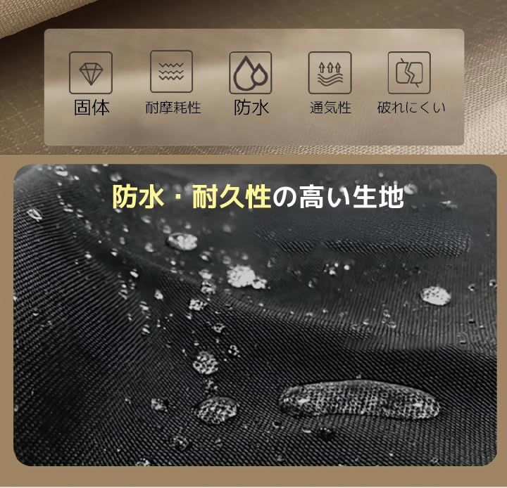 300Dポリエステル生地を採用して、生地の張りが良く、引裂けにくく、耐久性が高いです。撥水性も優れています。