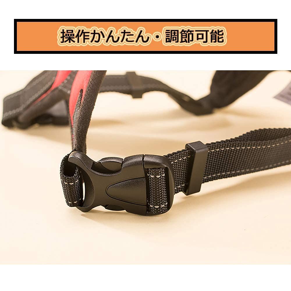 【優れた素材】:洗練されたデザインで、外側には丈夫なオックスフォード製、裏側には通気性の良いスポンジメッシュ素材を採用し、耐久性と安全性はもちろん、ワンちゃんに掛かる負担が少なく、蒸れずにワンちゃんに優しい仕上がりです。カラダに食い込んで不快感を与えないように、ハーネスの幅が広めに作られています。