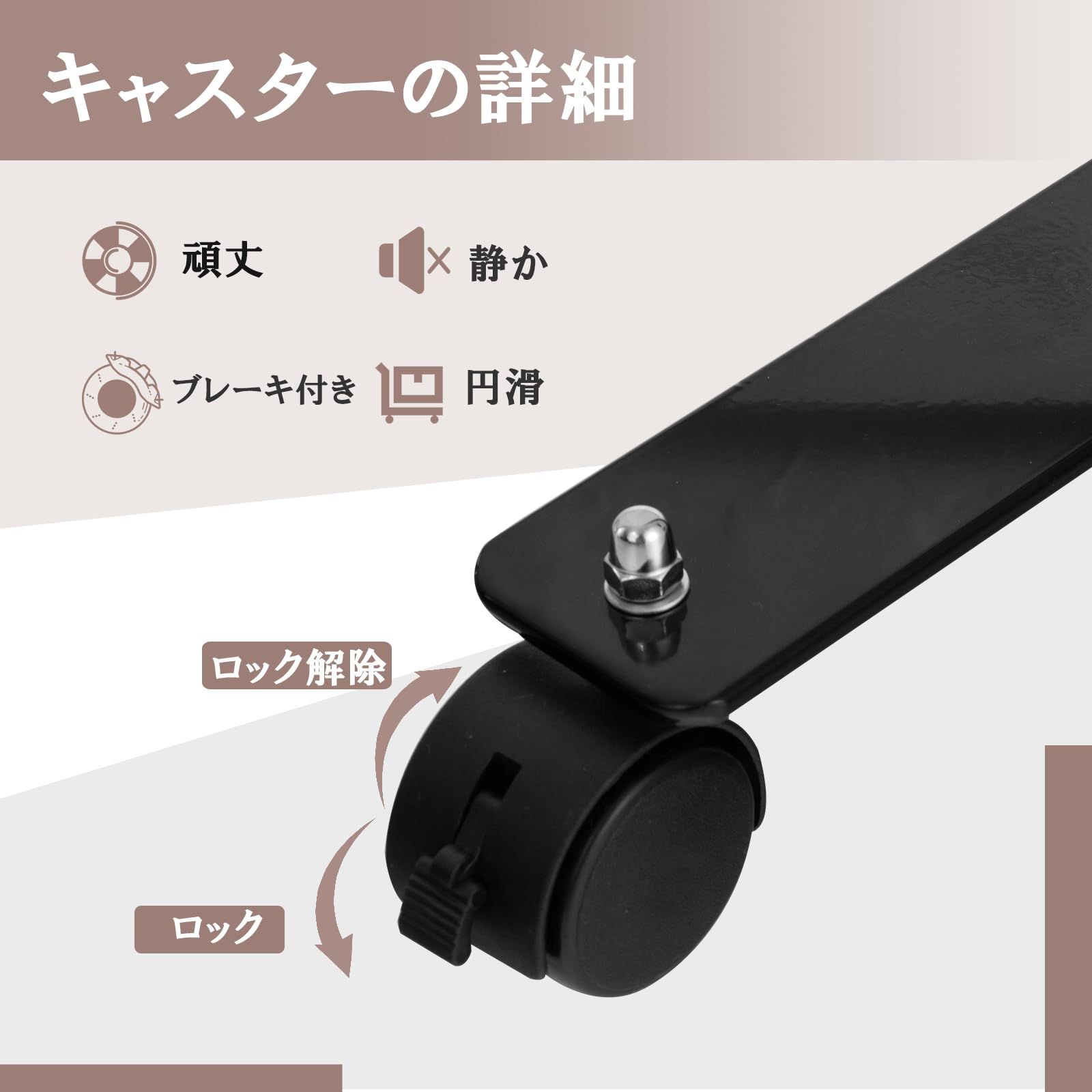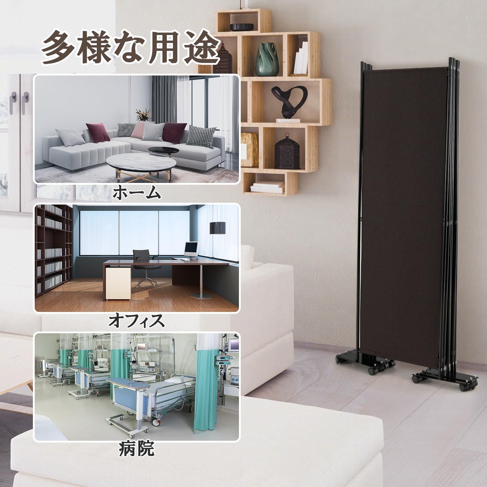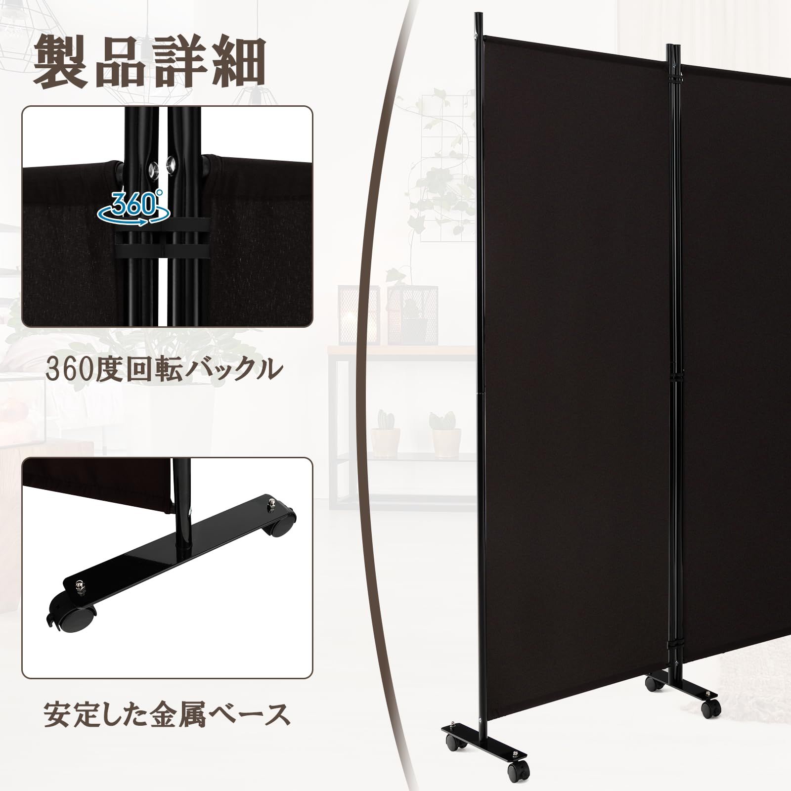【移動性】360°回転する滑らかなキャスターを装備し、静かな移動と床への傷を最小限に抑えます。キャスターにブレーキが付いているため、間仕切りを安定して固定し、信頼性を高めます。