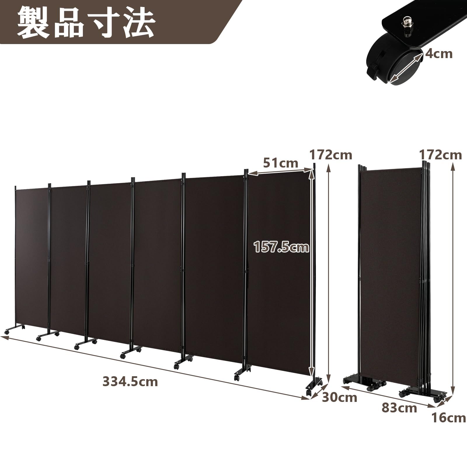 GYMAX パーテーション 6連 330cm 間仕切り キャスター付き 布タイプ 自立式 オフィス クリニック お家 目隠し ブラウン