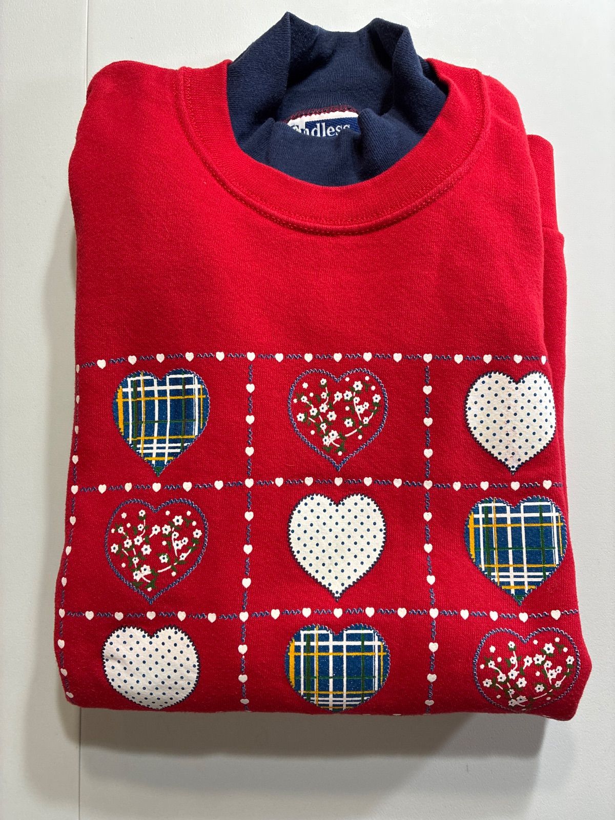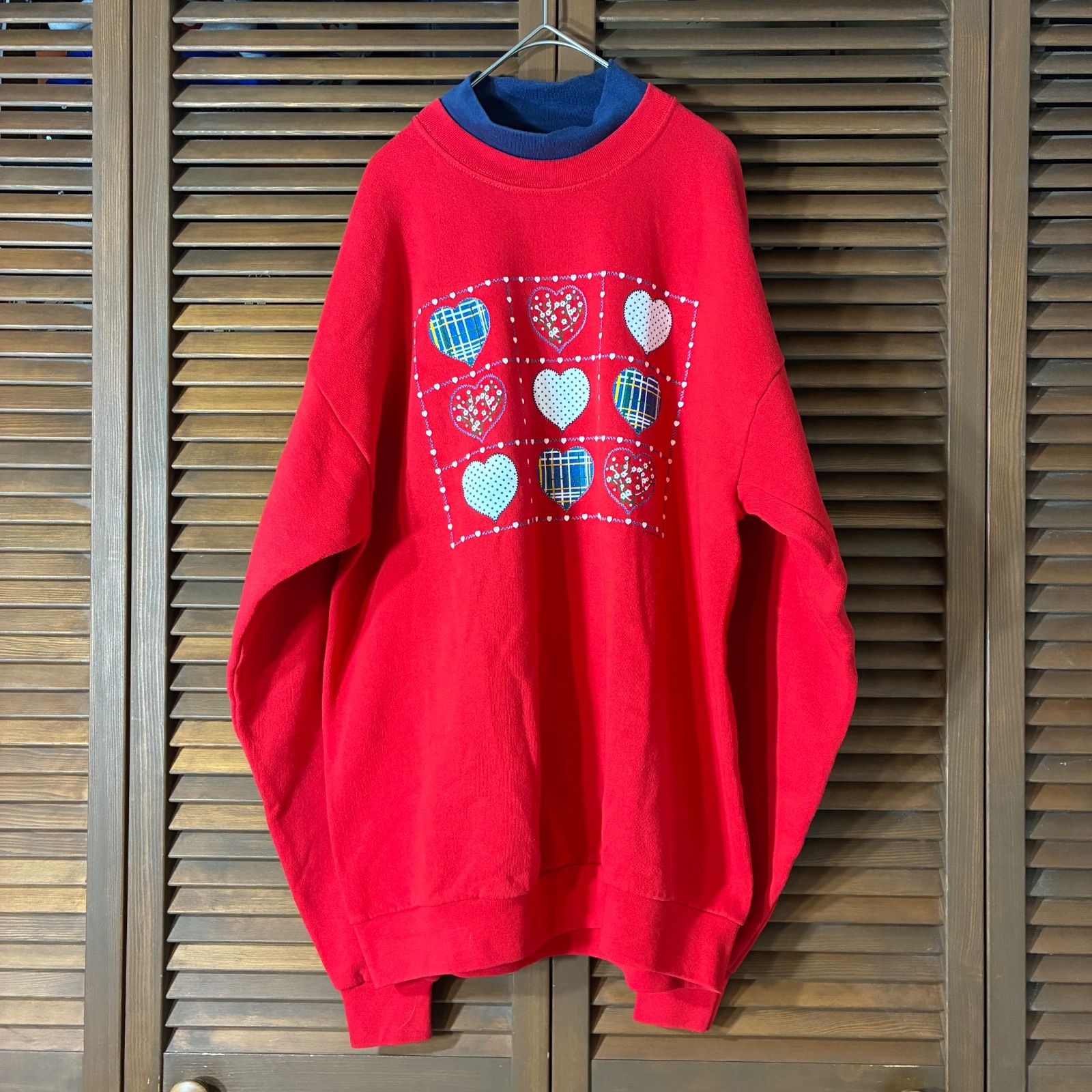 • Item: Vintage Sweatshirt (Layered Mock Neck / Applique Hearts)