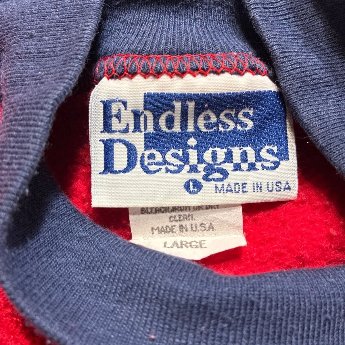 「Endless Designs」は、90年代のU.S.A.製スウェットによく見られるブランドの一つです。当時の空気感をそのままに、温かみのある「ダサかわ」なデザインが特徴で、古着市場でも個性を出せるアイテムとして人気を集めています。