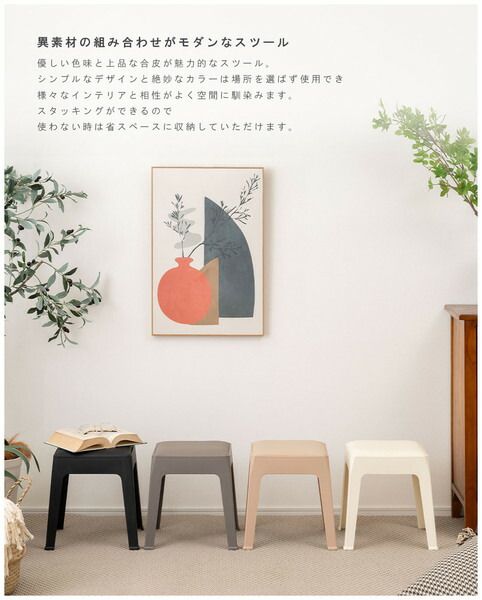 異素材の組み合わせがモダンなスツール 優しい色味と上品な合皮が魅力的なスツール。