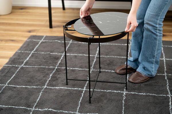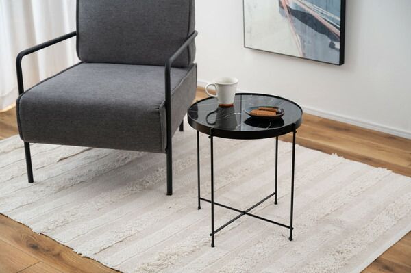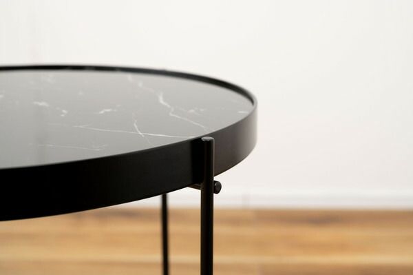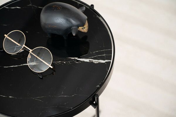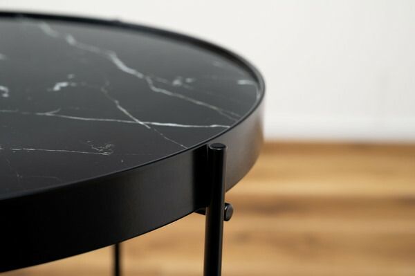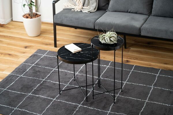 【サイドテーブル】 ミニテーブル ソファサイド 石目調 ブラック シック スチール シンプル スタイリッシュ 机 テーブル モダン かっこいい