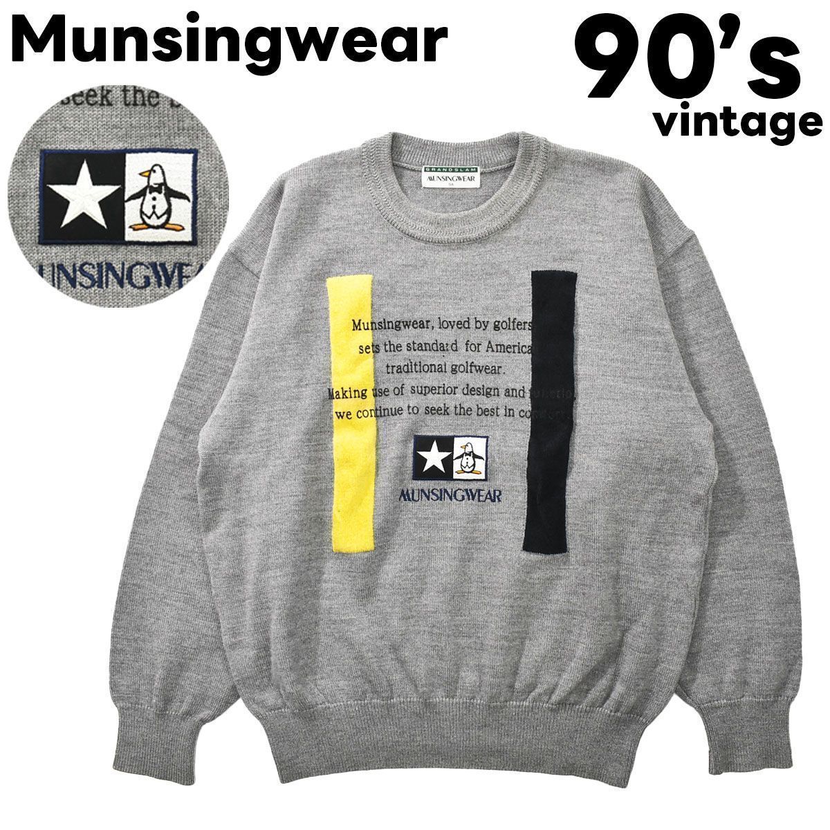 「ペンギン」 のシンボルマークでお馴染みの ゴルフウェア をメインとした老舗 スポーツブランド 『 Munsingwear マンシングウェア 』 ナインティーズ ヴィンテージ ビンテージ vintage オールド old クルーネック ニット メンズ 男性用 アメカジ 古着 ストリート 。