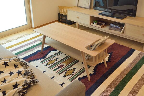 マガジンラック&中棚が付いた実用性のある設計と丸みをおびたナチュラル北欧テイストのデザインが、使っても飾っても無駄の無いインテリアを実現。