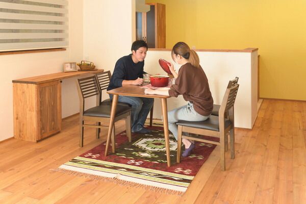 天然木製テーブルは、キッチンやリビングで使いやすく、カフェやデスクとしても素敵に活用できます。