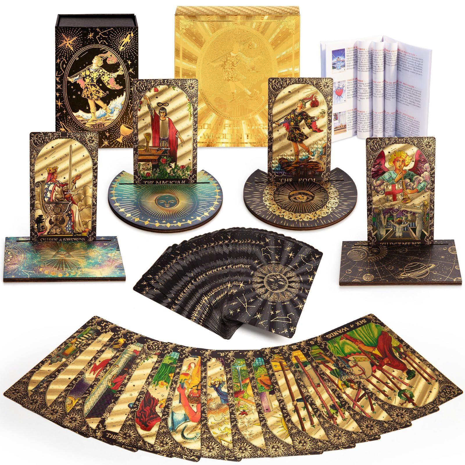 【タロットカードセット】タロットセットには、ゴールドタロット80個、ガイドブック、木製タロットカードホルダー4個、タロットカードボックスが含まれています。