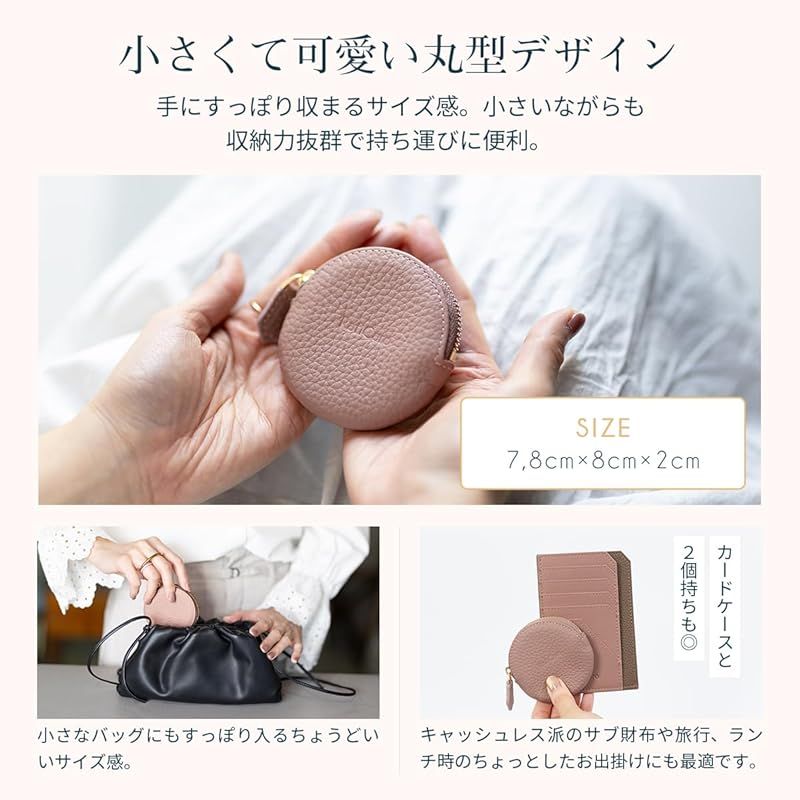 【手のひらサイズのレザーケース】 まるいフォルムがかわいい小銭入れです。小さめバッグにもポケットにも収まり、気軽に持ち歩けるサイズ感。見た目以上の収納力。コイン以外にもアクセサリーやイヤフォンのケースとしてもお勧めです。