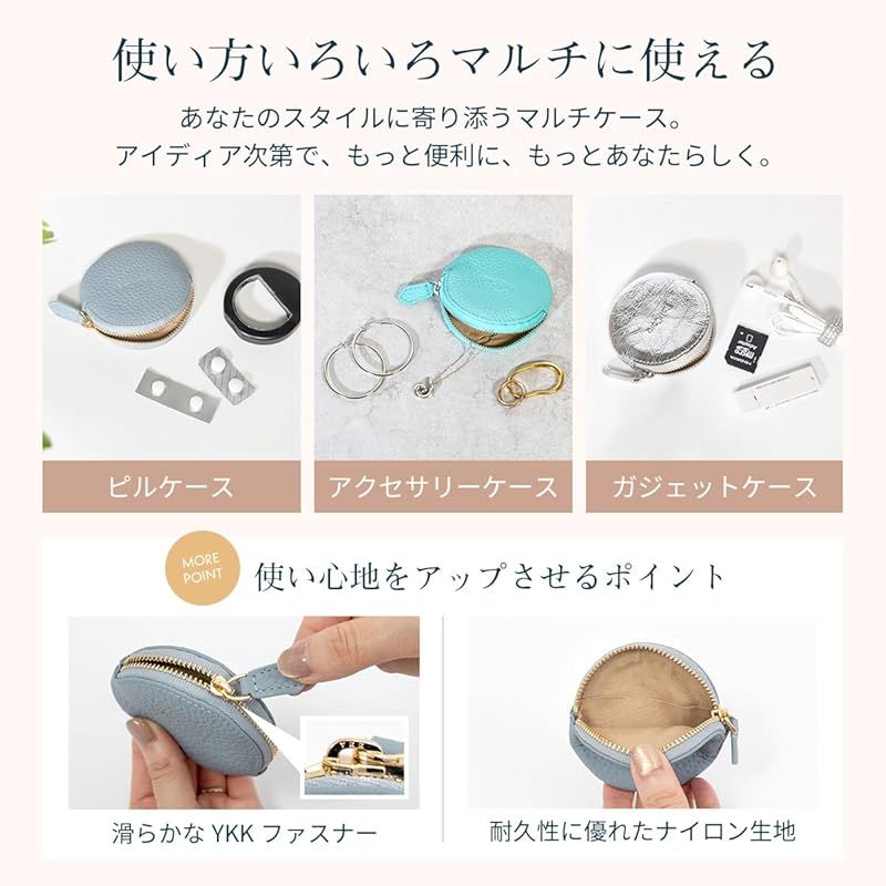 商品名:[RafiCaro] コインケース 丸型 小銭入れ 本革 YKKファスナー ミニ財布 ミニポーチ 小物入れ 化粧ポーチ マルチケース ラウンド型 シンプル おしゃれ 軽量 ダスティブルー