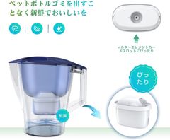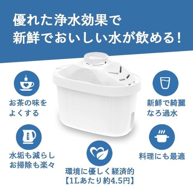 ・経済的&環境へ配慮:カートリッジ1個で水150リットルろ過可能。1リットルあたり約4.5円と、とても経済的。1日2.5L使用した場合、カートリッジ交換時期の目安は約2ヶ月となります。