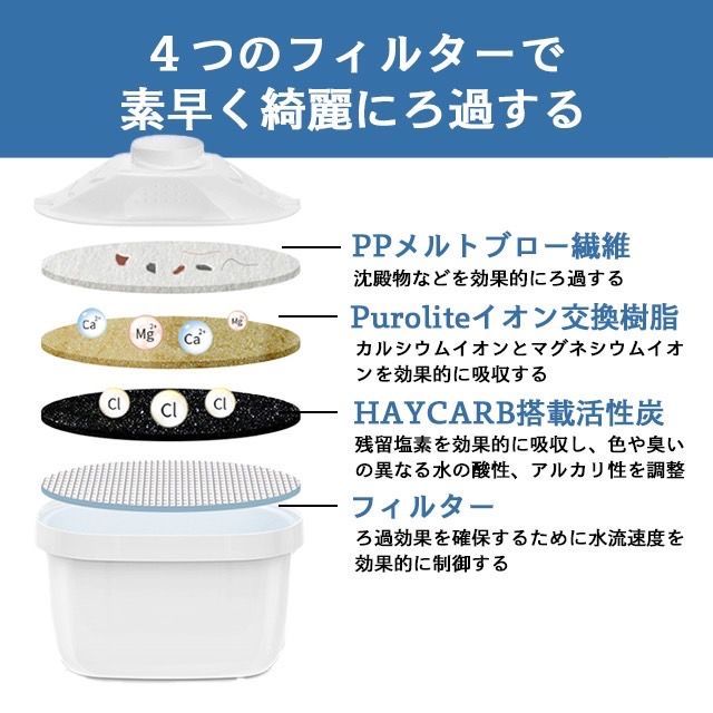 ポット型 浄水器用 カートリッジ【マクストラMAXTRA 】互換用フィルターカートリッジ 日本仕様 4個セット