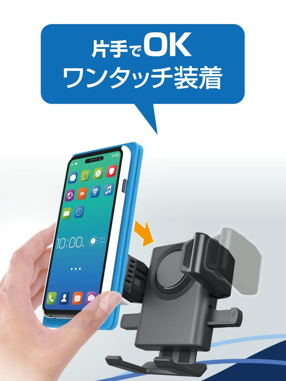 ・ホルダー部は、スマホで押し当てるだけのワンタッチホールド機構を搭載しています。