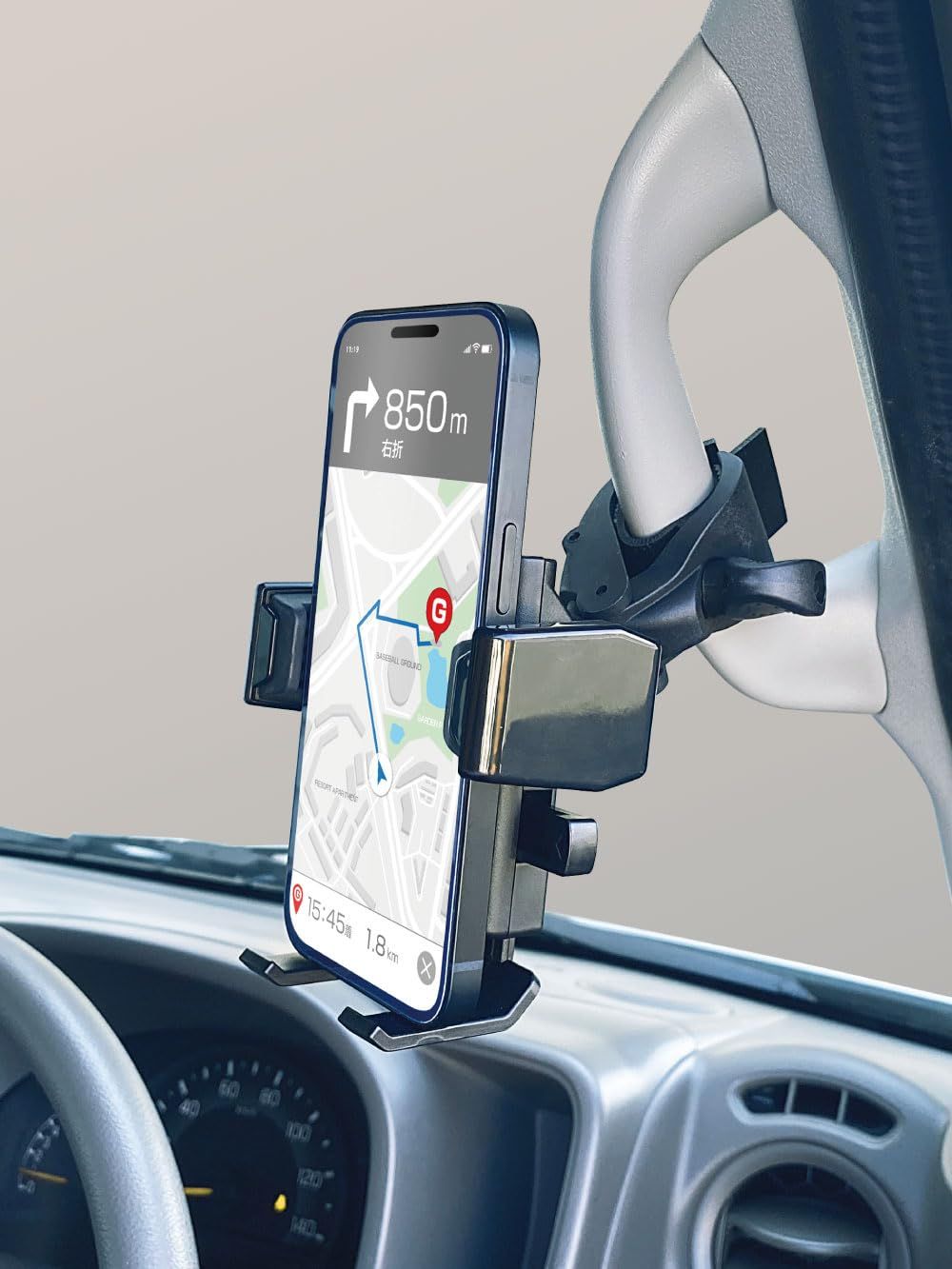 ・アシストグリップ取付けで視界を妨げにくいスマホホルダーです。