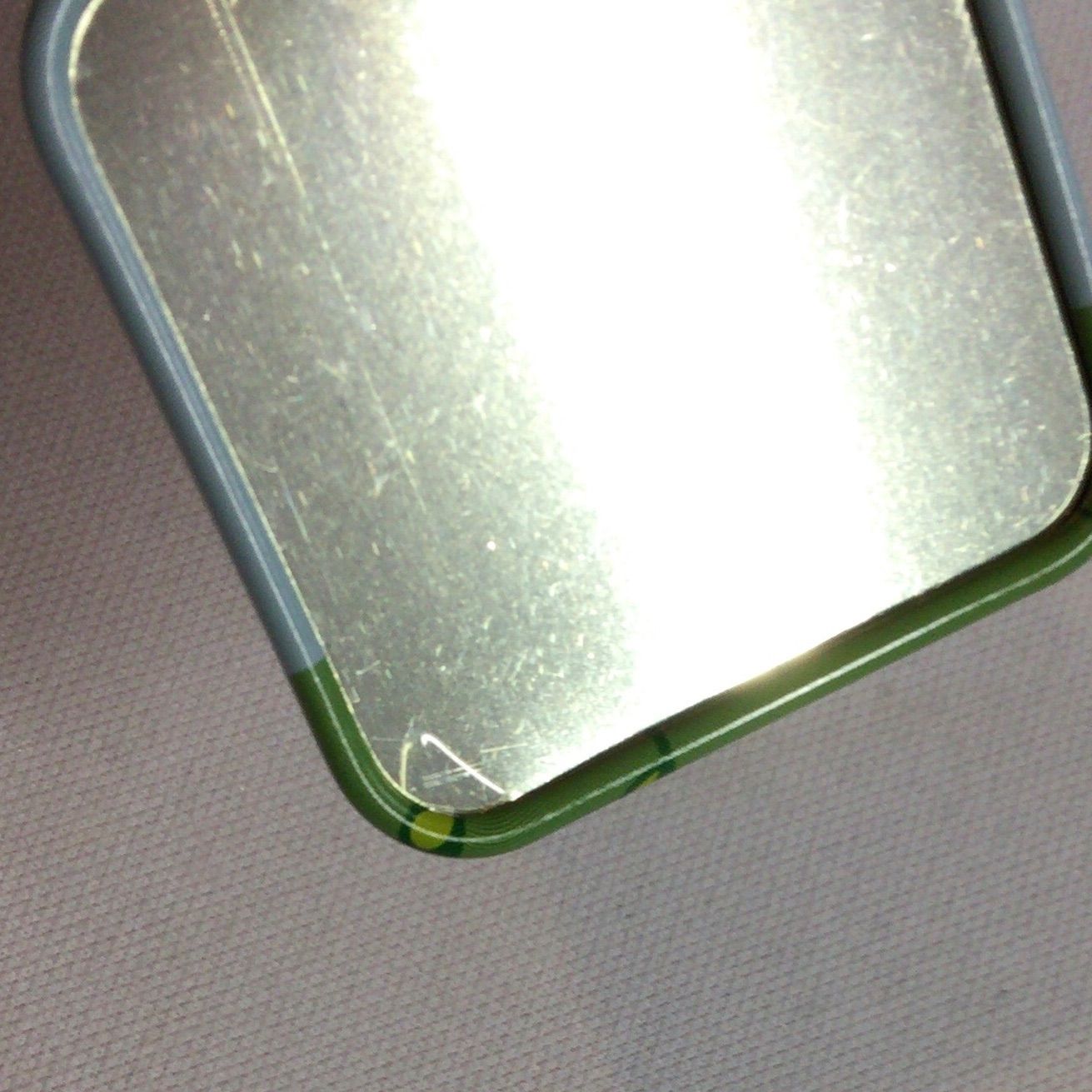 表面にやや傷があり、裏面のミラーには全体に目立つ傷汚れがあります。