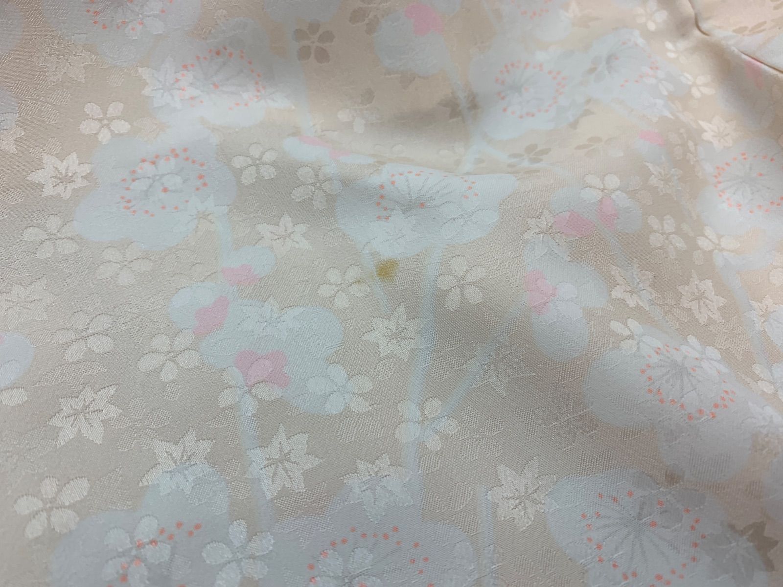 パールオレンジ(淡いオレンジ系) 梅柄 着丈 約123㎝