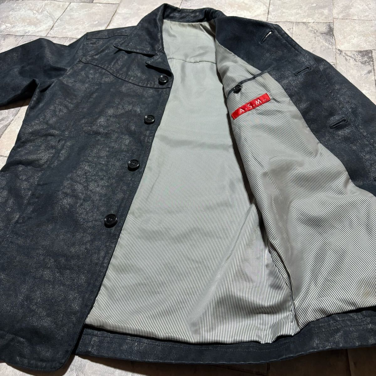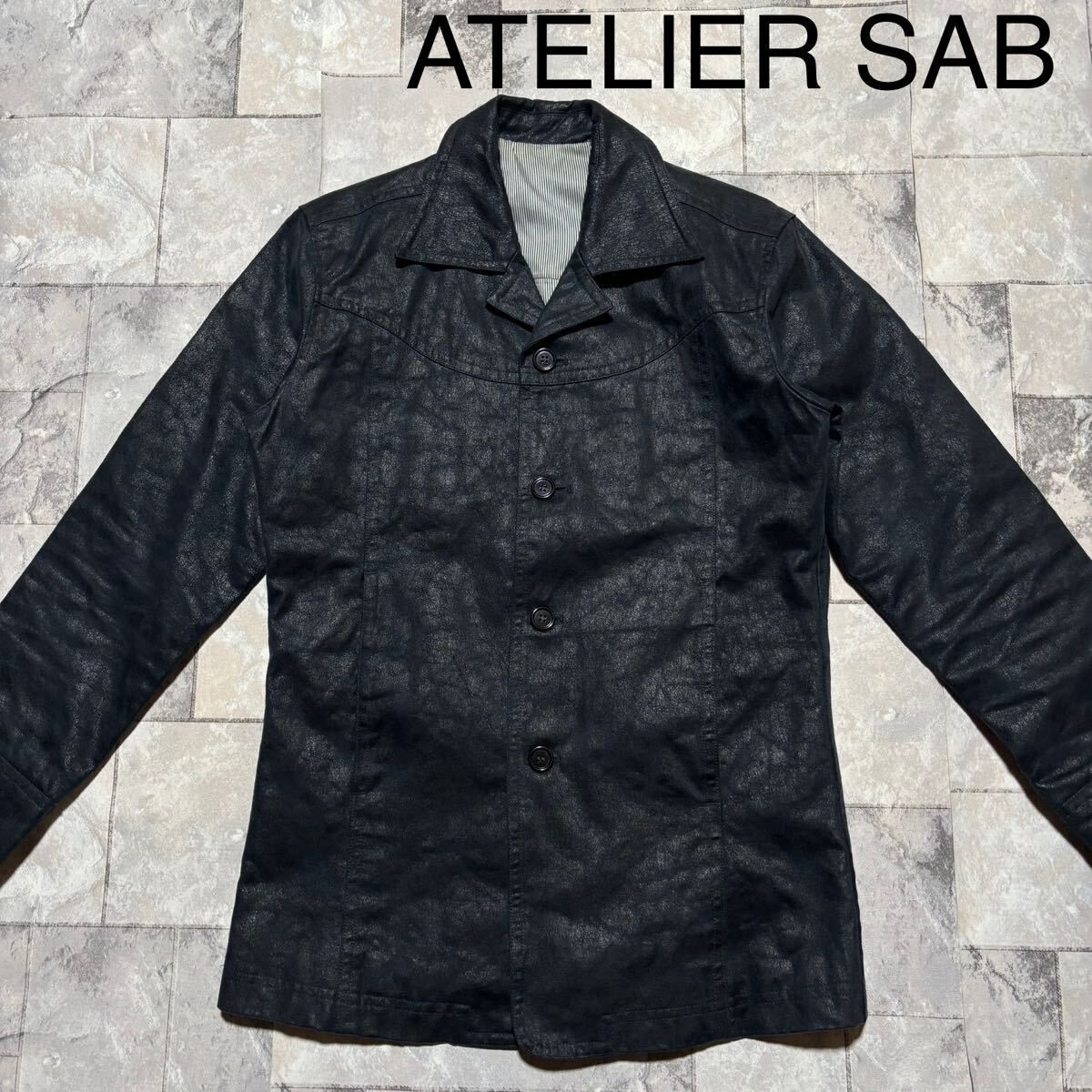 ATELIER SAB アトリエサブ A.S.M テーラードジャケット コットンポリ カジュアル 裏地ストライプ ネイビー サイズ48(L相当)玉FS1697