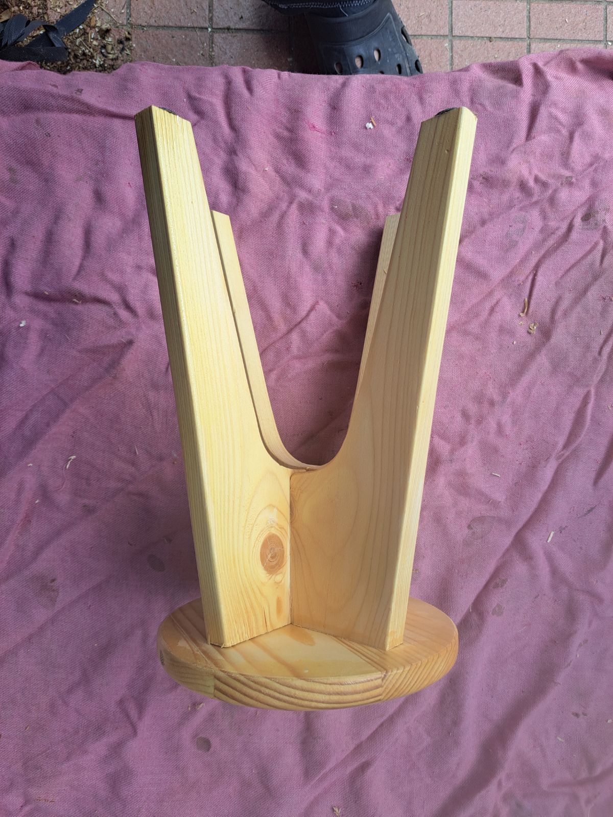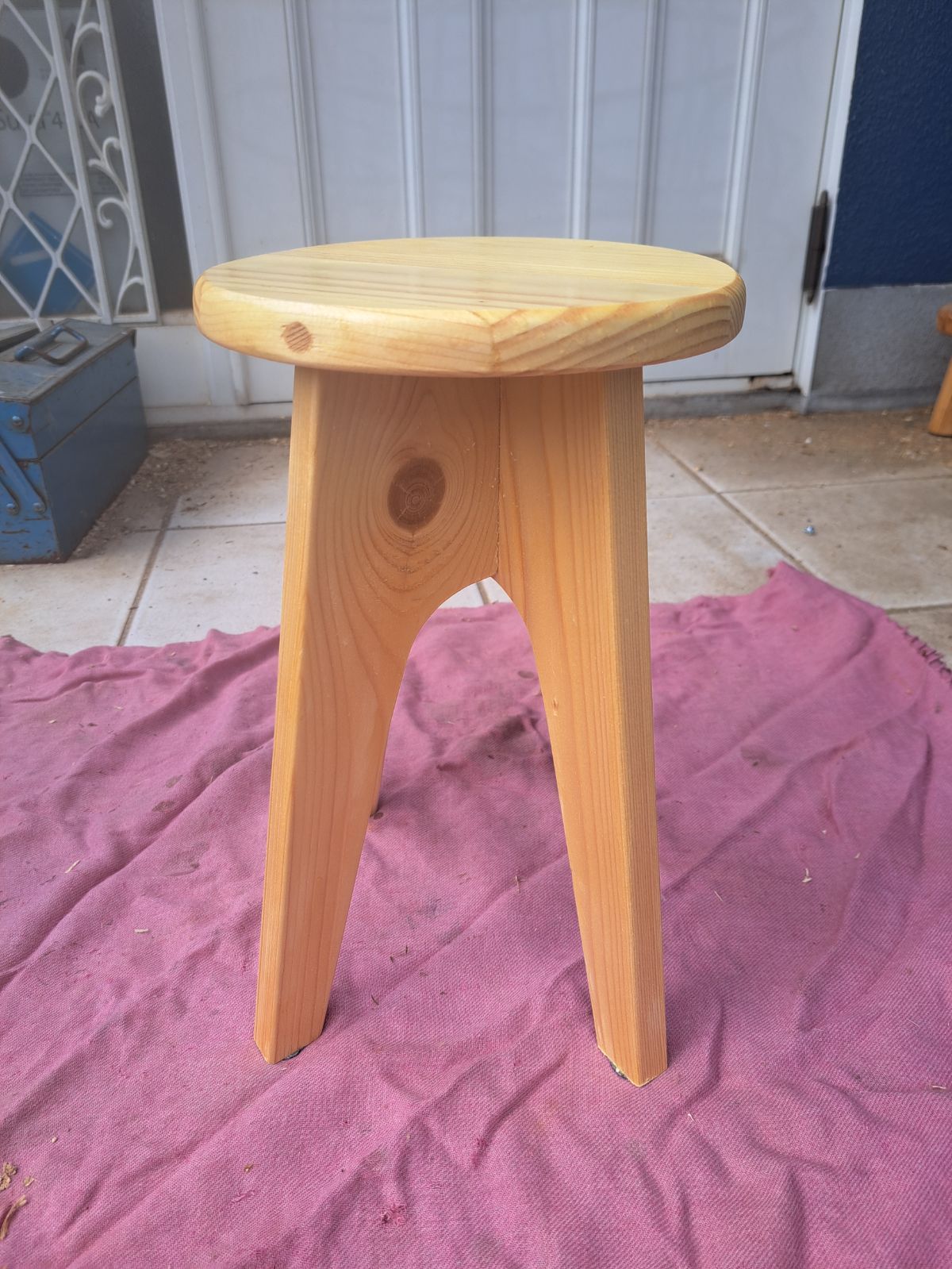 趣味で木工してます。 いつも何故か子供椅子ばかり作っているので、初めてお母さん用の椅子を作ってみました。なぜちっちゃい母さん用と言うのかは、普通のスツールは大人の男性用が多く高さ的にも50cm位が殆どですこれじゃ小さなお母さんには高すぎるかと思い高さを