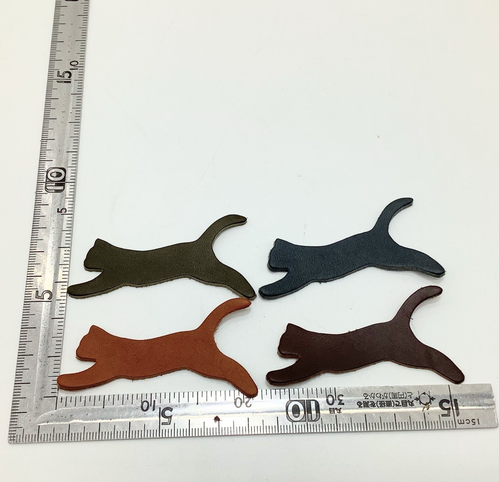 革の端切れを活用して、型抜きしたレザーチャーム12枚セット【ねこ】です。