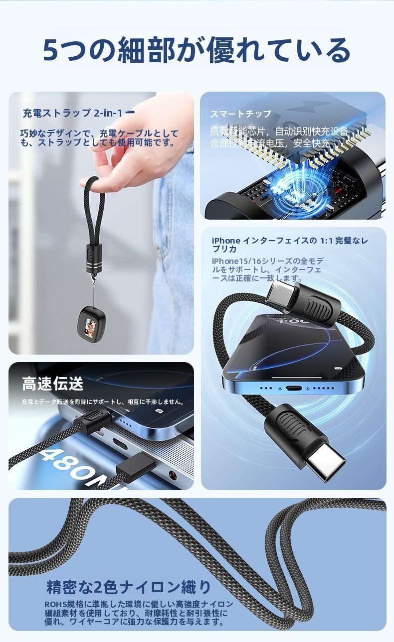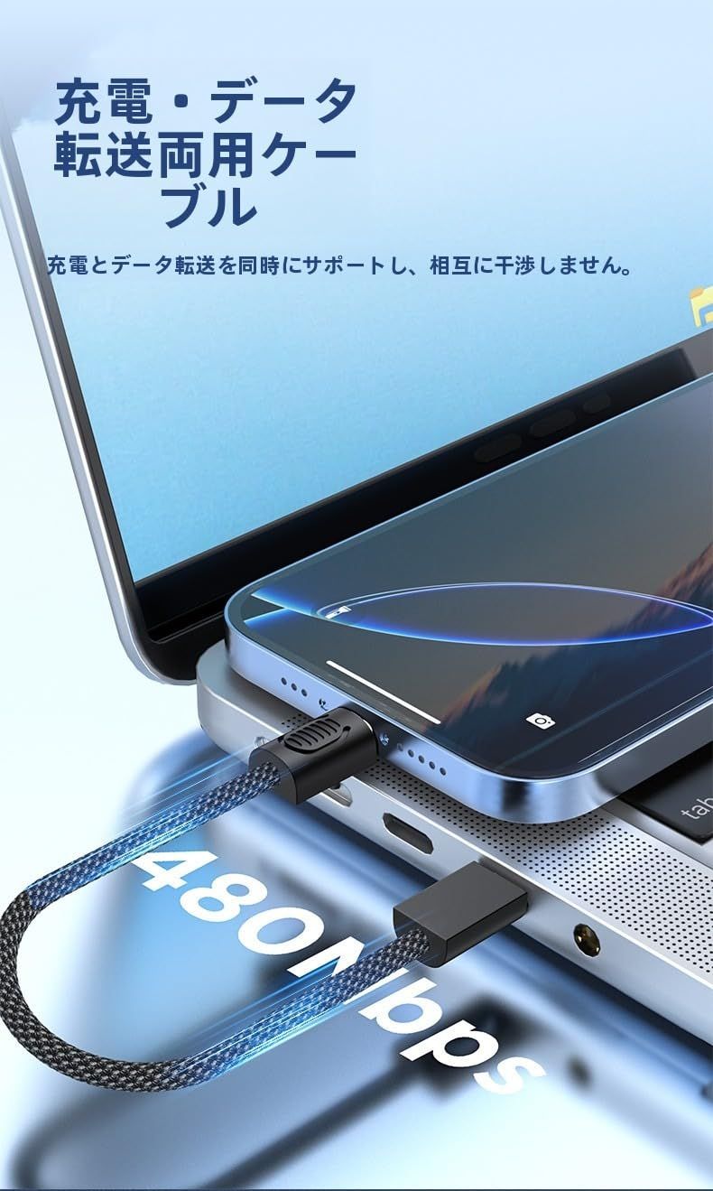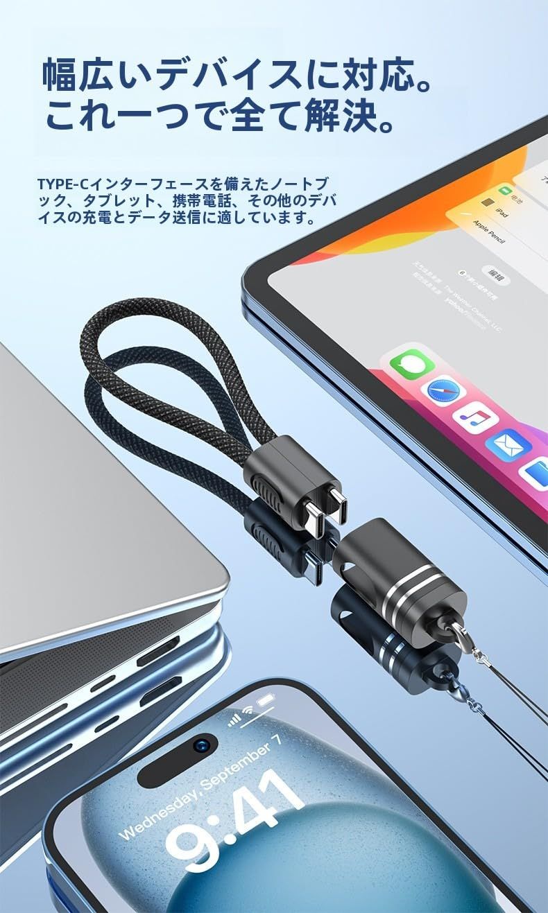 kaofish ショートケーブル USB C オス - Type C 充電 データケーブル 15cm キーチェーン USB PD60W 携帯電話 ノートパソコン キーチェーン用 (白)