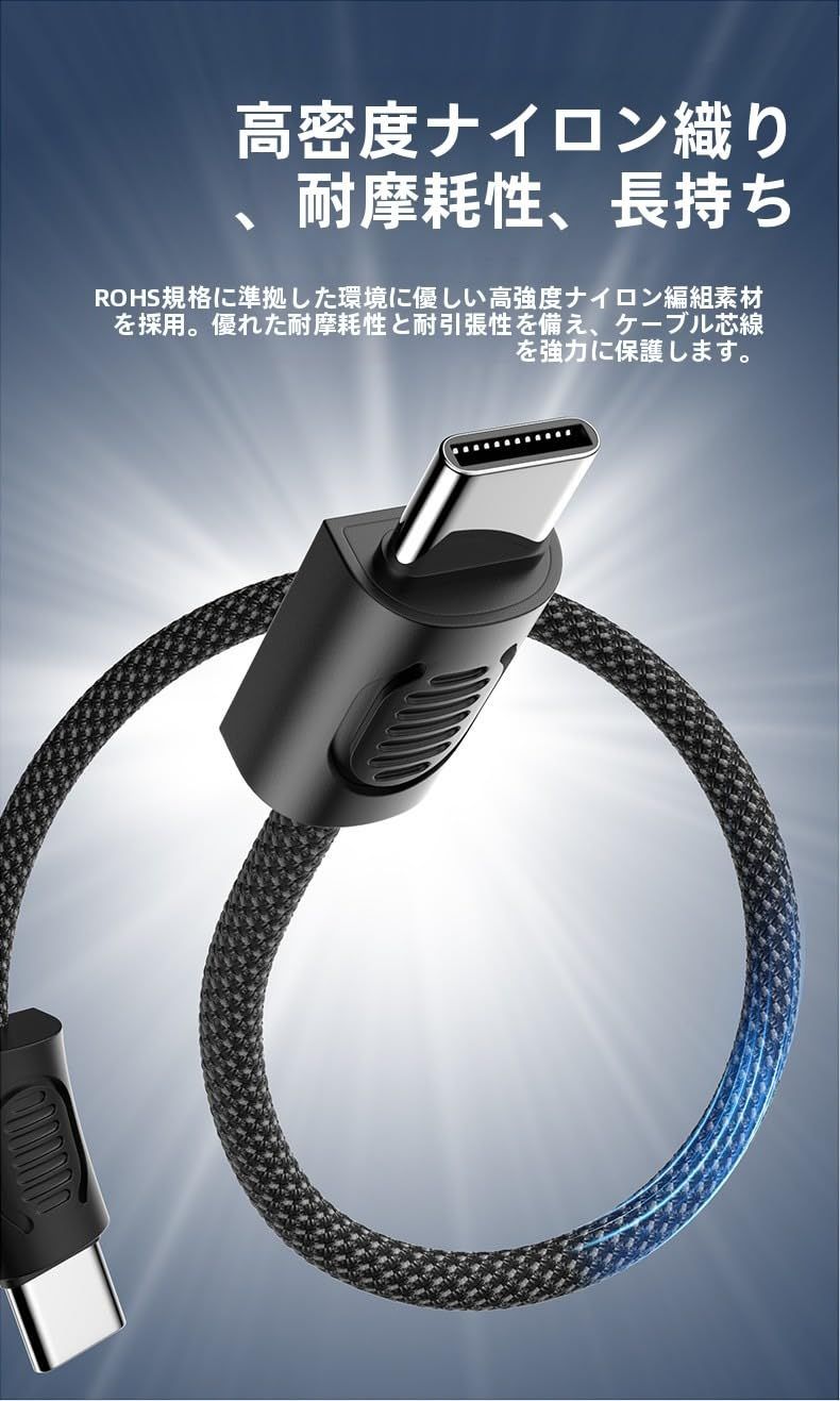 高耐久ナイロン繊維で編み込まれたケーブルは「曲げ」や「ねじれ」に強く、永くご使用いただけます。