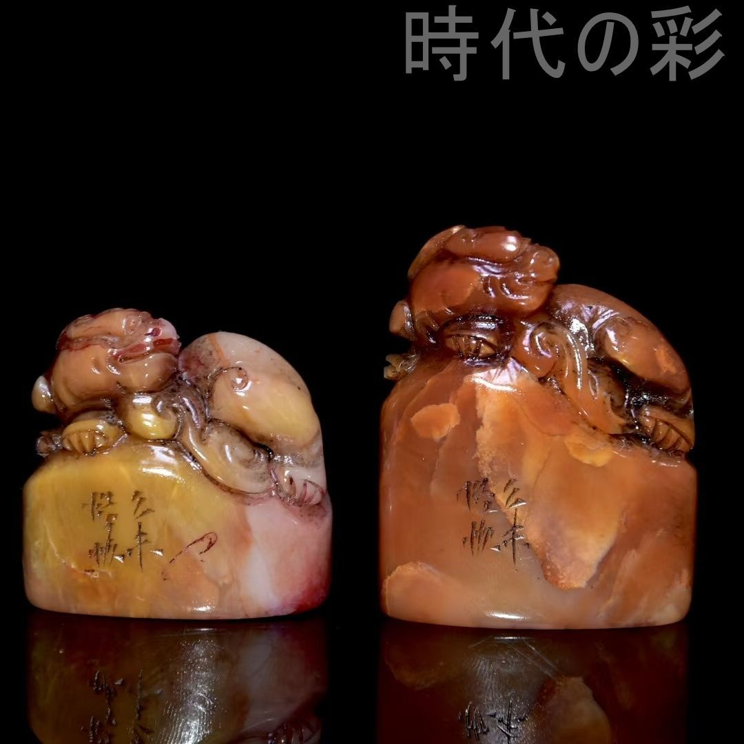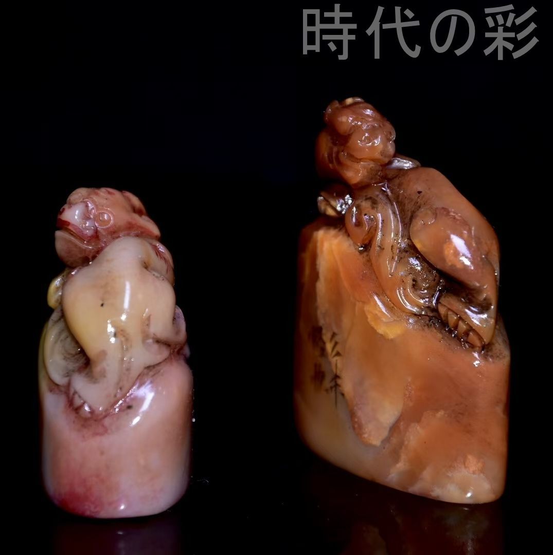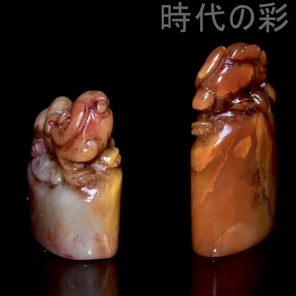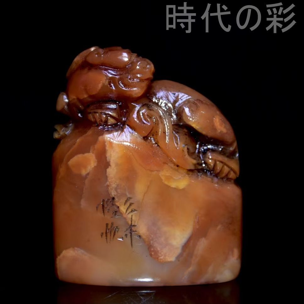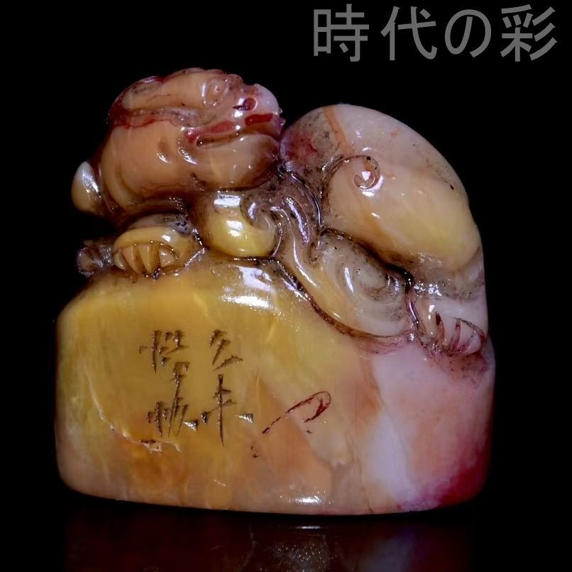 名家手彫による寿山石老 印章。天然原色、包漿厚く風格ある古色。保存状態極良。