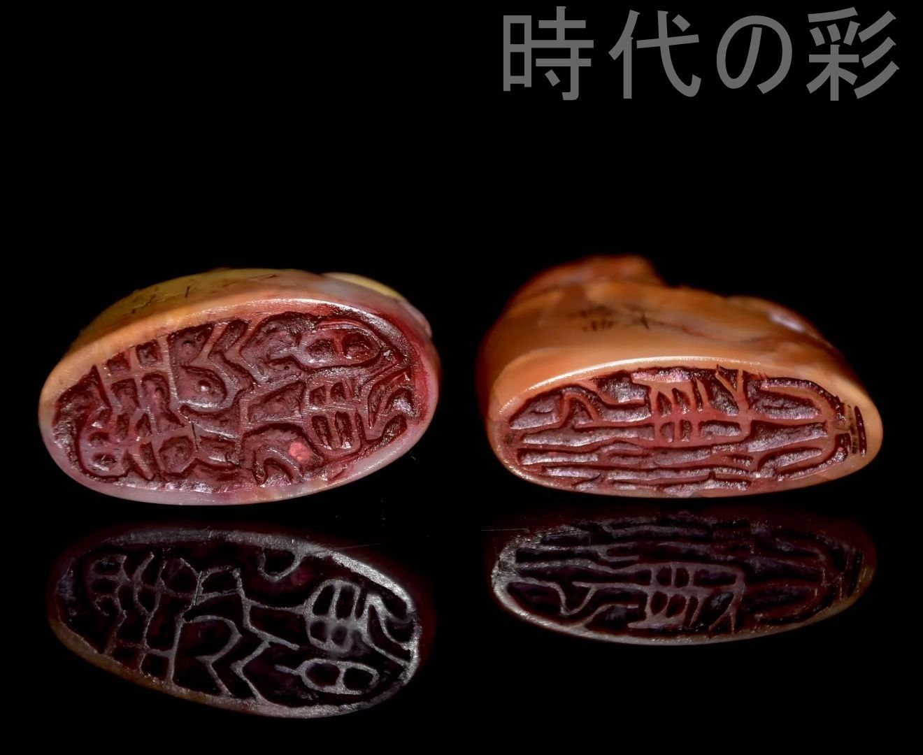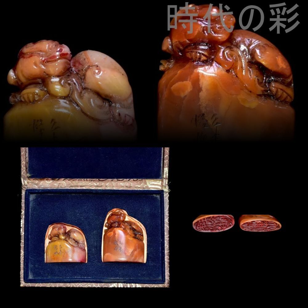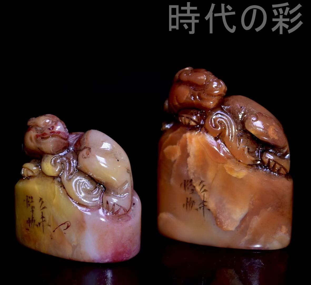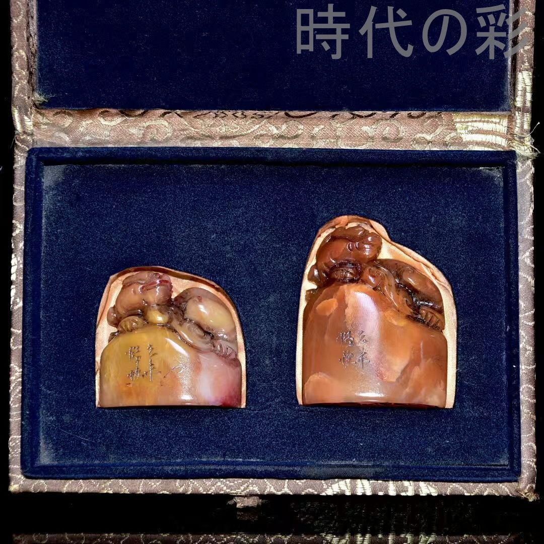 名家手彫による寿山石老 印章。天然原色、包漿厚く風格ある古色。保存状態極良。