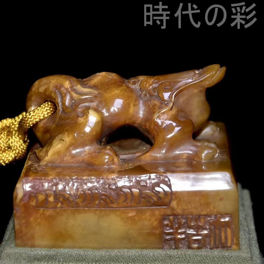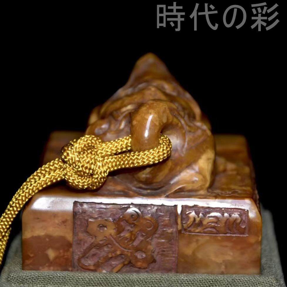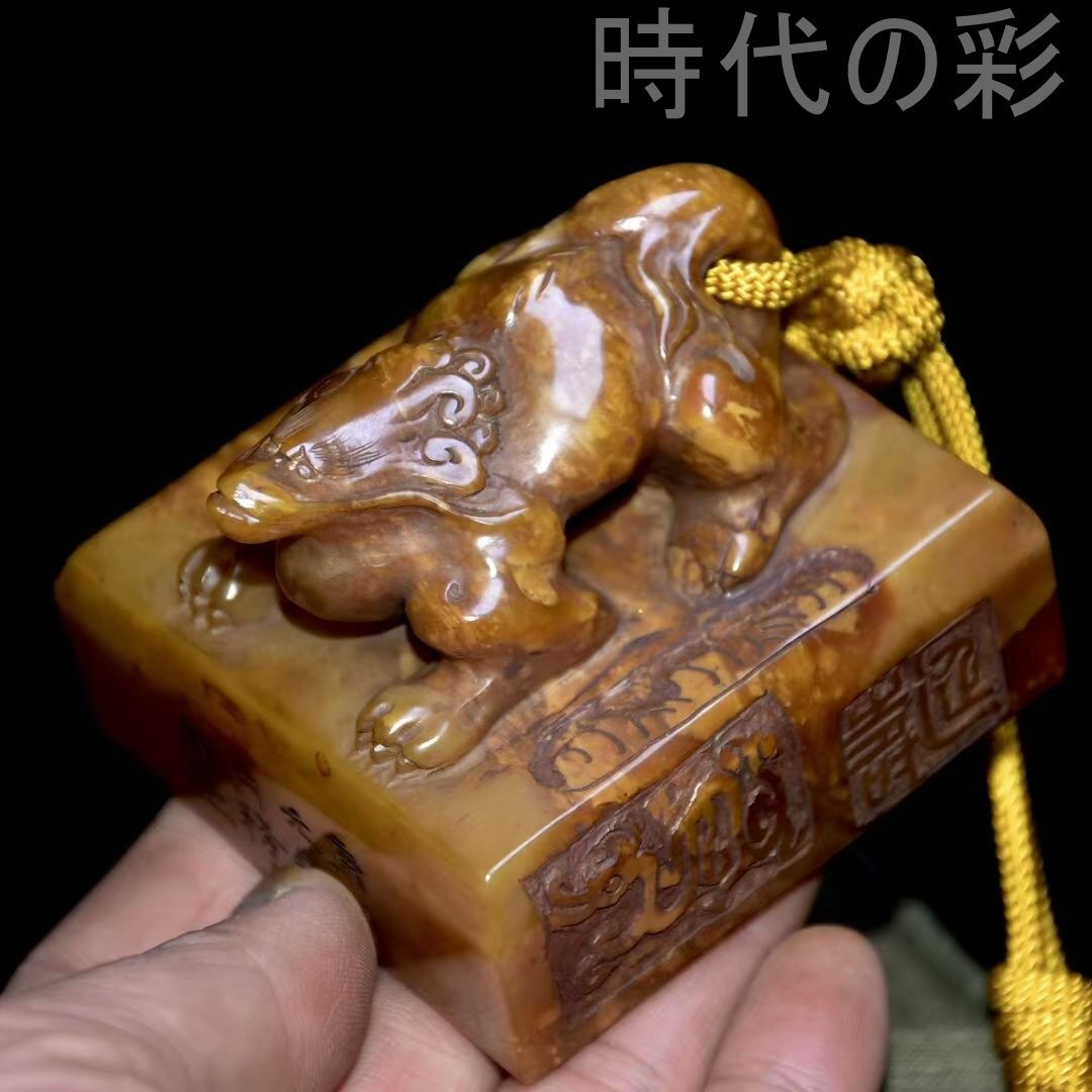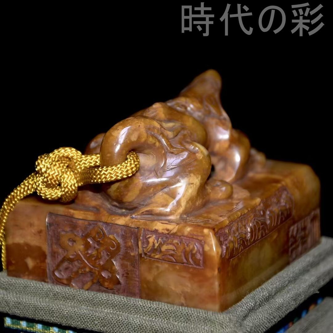 寿山田黄石 印章。康熙元年内務府造。精密彫刻と自然包漿。血絲紋美しく歴史的価値高い逸品。