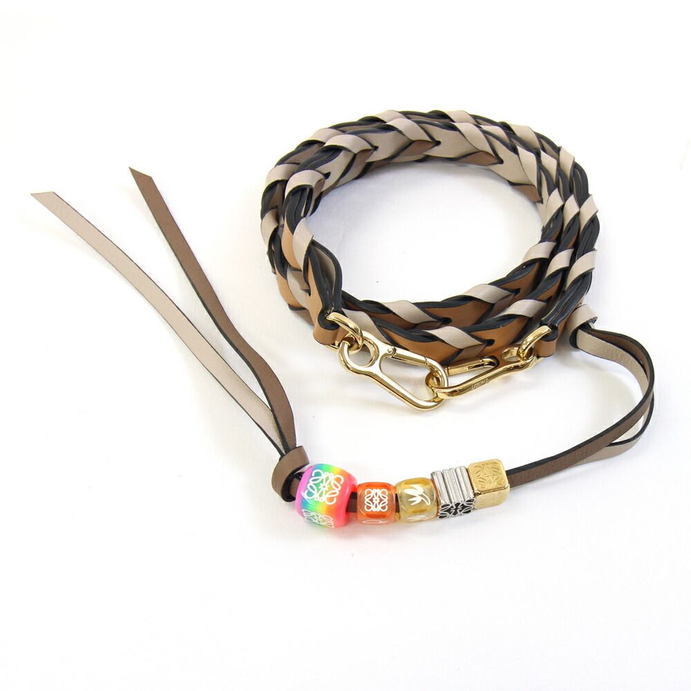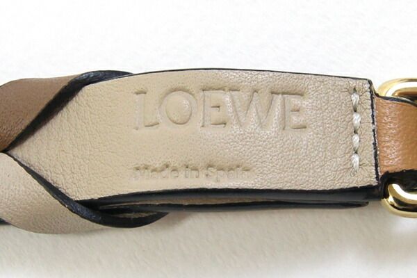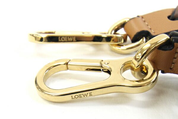 ロエベショルダーストラッププレイテッドストラップ112.30.S94ライトベージュブラウンキャメルレザー中古斜め掛けショルダーバッグ替えストラップアナグラムレディースLOEWE