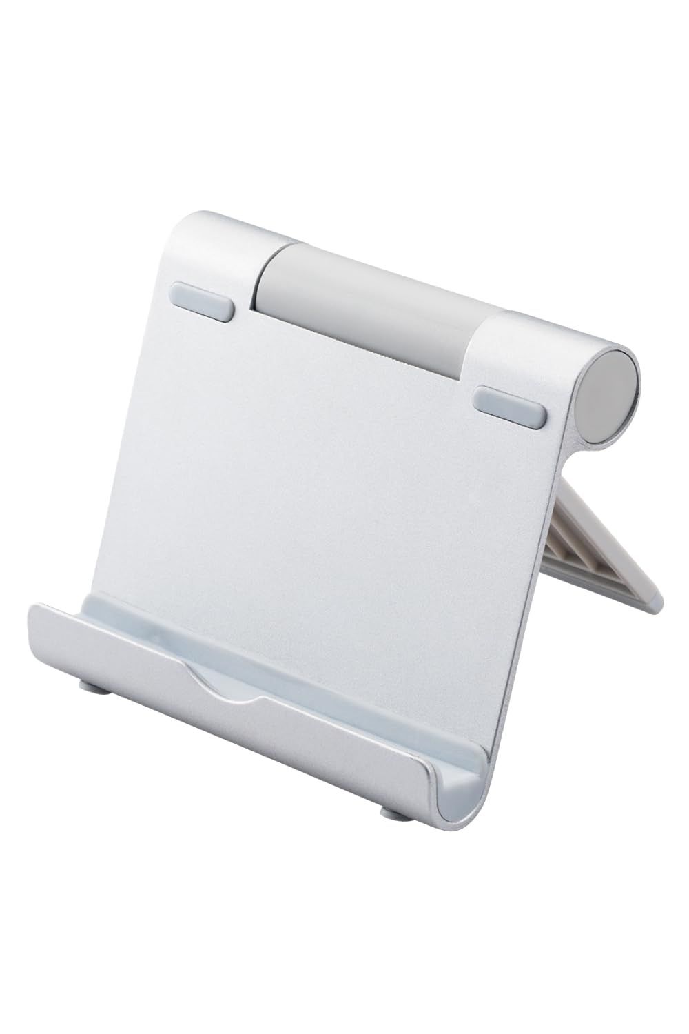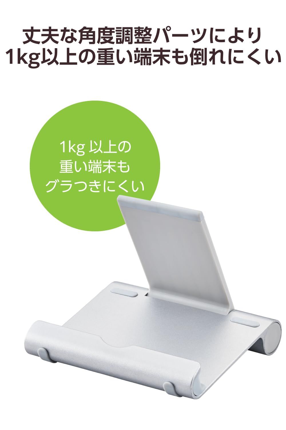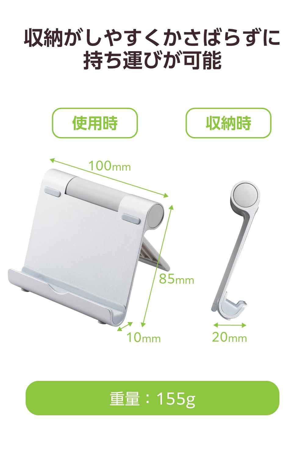 エレコム タブレット スマホ スタンド 4.6~12.9インチ対応 10段階 角度調節 角度固定 折り畳み時 厚さ約2cm 軽量 持ち運び 【 iPhone iPad Pro Air mini FireHD Huawei Galaxy GooglePixcel Switch 】 シルバー TBWDSCMPTSV