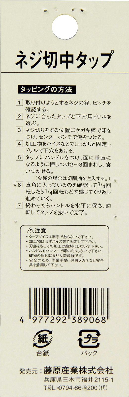 用途:一般鉄鋼用ねじ切り作業(メネジ切り)