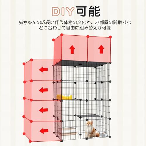 【組替え自由】各パーツを自由に組立できるので、1段タイプ、2段タイプとしてもお使い頂けます。猫の成長に合わせて高さの変更ができます。