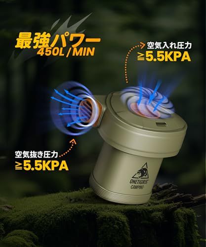 【大容量4000mAhバッテリー】4,000mAhの大容量バッテリーを内蔵し、Type-Cの充電スタイルにより急速充電が可能。空気入れと空気抜きの両方の機能を備えており、キャンプに必要なインフレータブルギアを給気と排気することができ、キャンプの始まりから終わりまで活躍します
