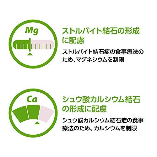 【下部尿路疾患の猫のための食事療法食】猫の下部尿路疾患(ストルバイト結石症・シュウ酸カルシウム結石症)に配慮し、特別に調製された食事療法食です。この食事は、ストルバイト結石、シュウ酸カルシウム結石が形成されにくくするために、マグネシウムやカルシウムなどのミネラル成分を調整しています。