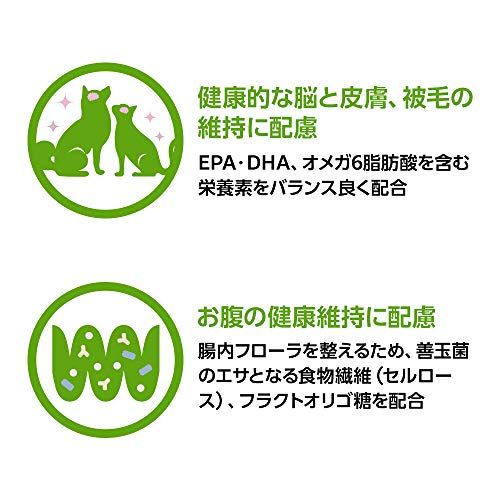健康的な脳と皮膚、被毛の維持に配慮 EPA・DHA、オメガ6脂肪酸を含む栄養素をバランス良く配合。健康的な脳と皮膚、被毛の維持をサポートします。