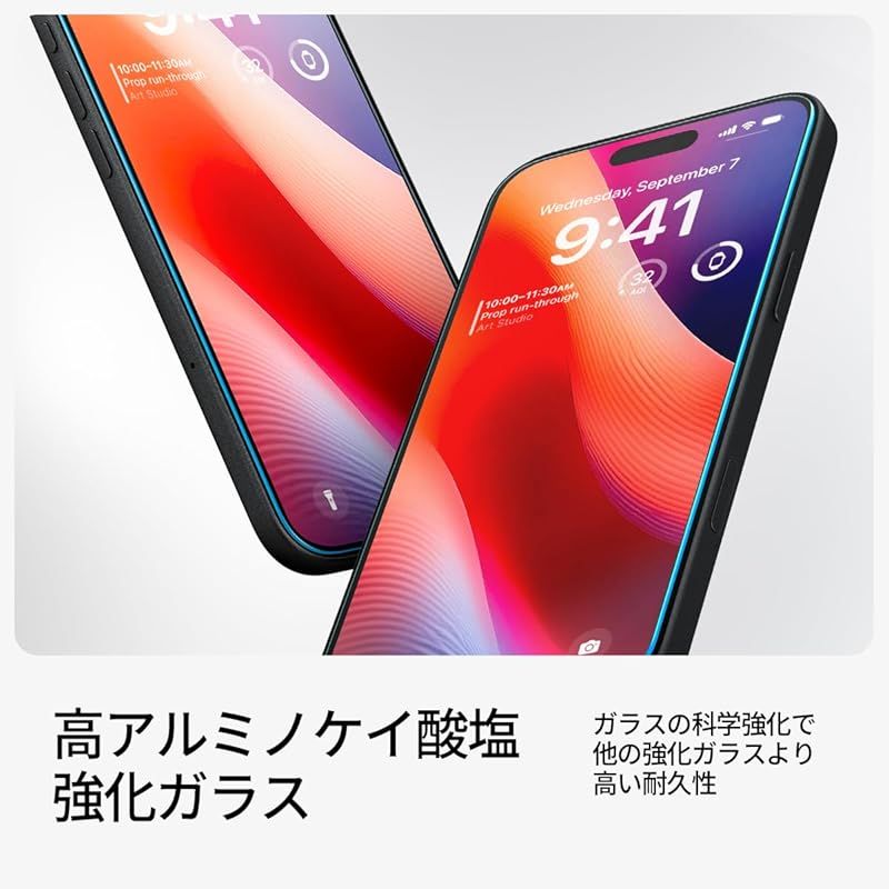[iPhone 16 / iPhone 15対応] iPhone 16とiPhone 15にピッタリ合わせた設計で、表示画面をしっかり保護します。曲面加工でiPhoneとの一体感を提供します。 サイズ: 142.07*66.06*0.58 mm