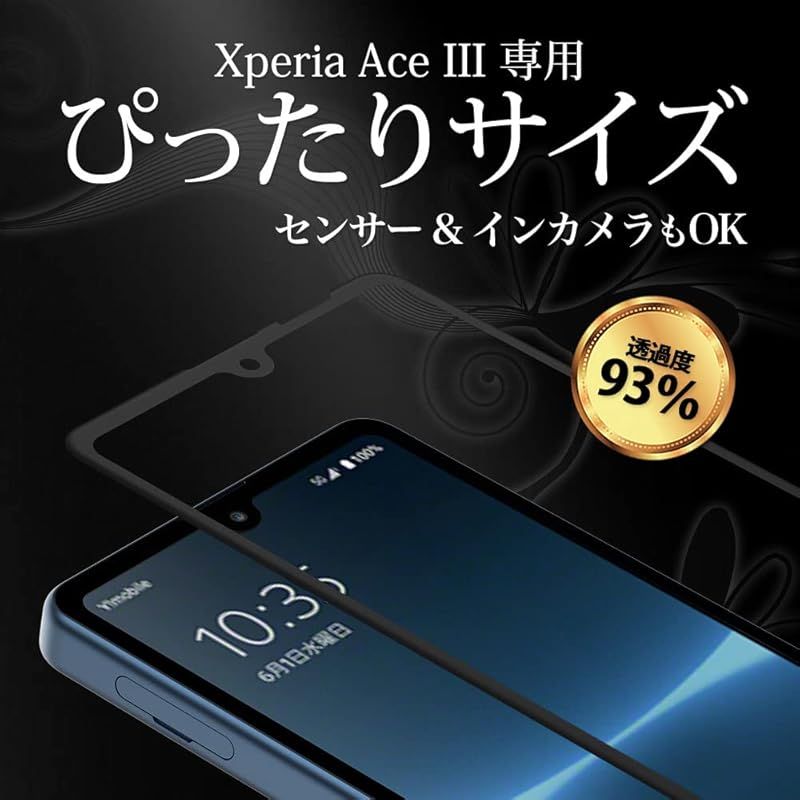 商品名:Hy+ Xperia Ace III フィルム SO-53C SOG08 A203SO ガラスフィルム W硬化製法 一般ガラスの3倍強度 全面保護 全面吸着