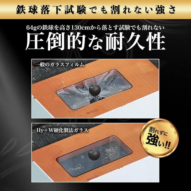 【鉄球落下テストで実証実験済み】130cmの高さから64gの鉄球を3度落下させるテストに合格!従来の強度のガラスフィルムは落下1回目で割れてしまうのに対し、W硬化製法ガラスフィルムは3度の落球でも割れない強さ。大切なスマホ画面をしっかりガードします。