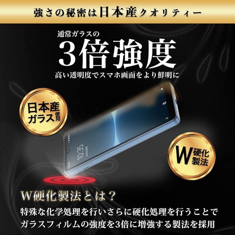【W硬化製法で一般ガラスフィルムに比べ3倍の強度を実現】Hy+(ハイプラス) W硬化製法ガラスフィルムは特殊な化学処理を行うことで従来のガラスフィルムに比べ3倍の強度を実現。Xperia Ace III SO-53C SOG08の液晶画面を強固に保護します。