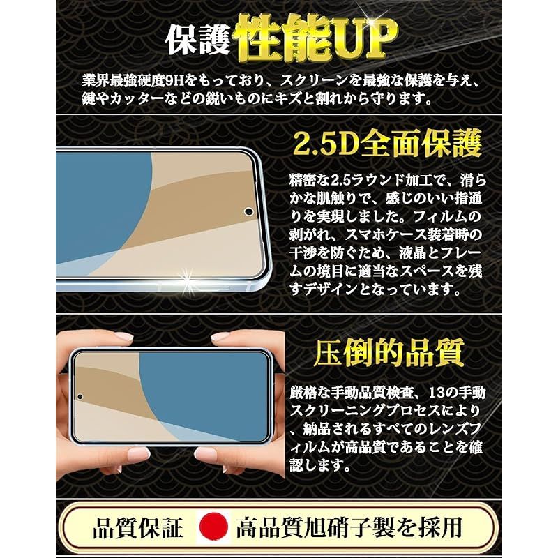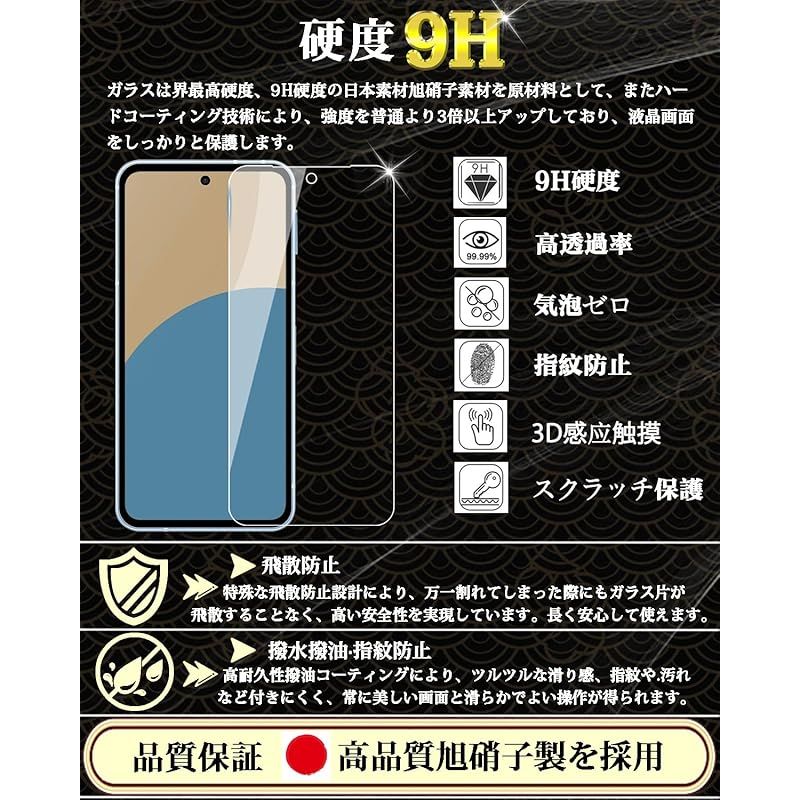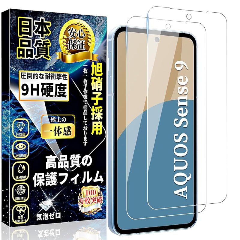 商品名:対応 AQUOS sense9 ガラスフィルム SH-53E / SHG14 / SH-M29 強化ガラス【2枚入り】指紋認証対応 日本旭硝子製 硬度9H 指紋防止 高透過率 飛散防止 衝撃吸収 スクラッチ防止 簡単貼り付け 自己吸着 気泡ゼロ アクオスセンス