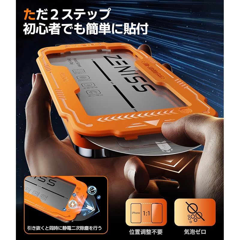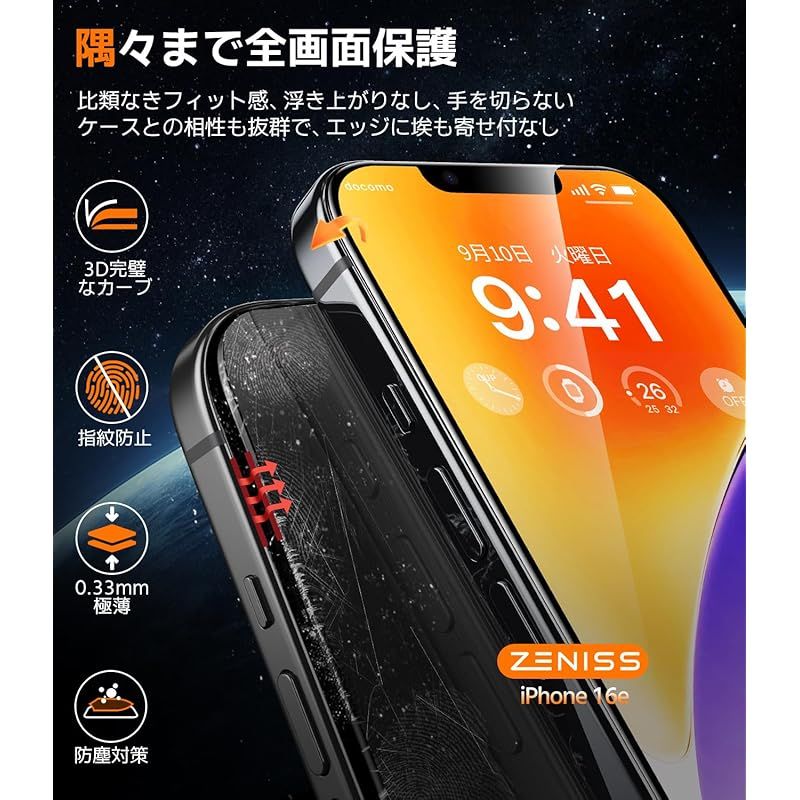 【業界初 iphone用の 16e ガラスフィルム-失敗率0%】iphone用の 16e フィルムを貼る際、位置がずれる、ホコリが入る、気泡ができる、フィルムの付着の失敗……といったお悩みはありませんか?これらの問題を解決するため、画期的なホコリ除去ガイド枠ガラスフィルムを開発しました!革新的な自動位置合わせと自動吸着技術により、2ステップで簡単に貼り付けが完了。息をするように簡単に装着可能!スクリーンをきれいにした後、ガイド枠をiPhoneの画面に置き、ホコリ除去ストリップを引くだけで簡単にフィルムを貼ることができます。気泡レス、成功率up!経験のない方でも完璧にフィルムを貼り付けられます。パッケージの内容:いphone 16e ガラスフィルム(6.1インチ)*2(複数回購入の必要なし、簡単に交換可能)清拭ツールキット*2 ガイド枠*1確認して下さい。2年間の付きです。何か質問がある場合は、弊社に連絡してください。12時間以内にお客様の問題を解決します!