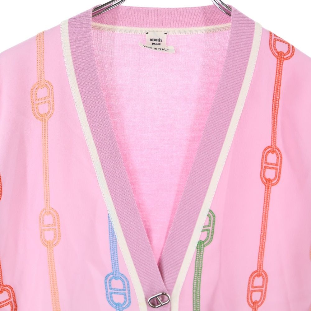 【品名】23SS シェーヌダンクルボタン 柄刺繍 シルク ニット カーディガン シルバー金具 ピンク レディース 3E2826DV