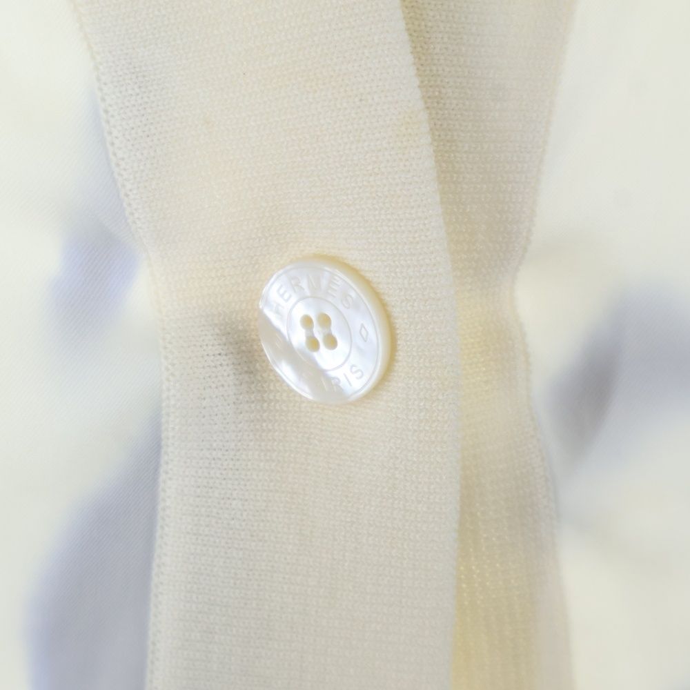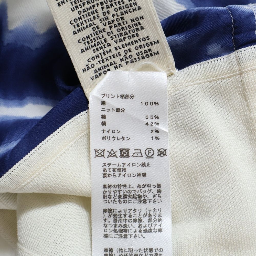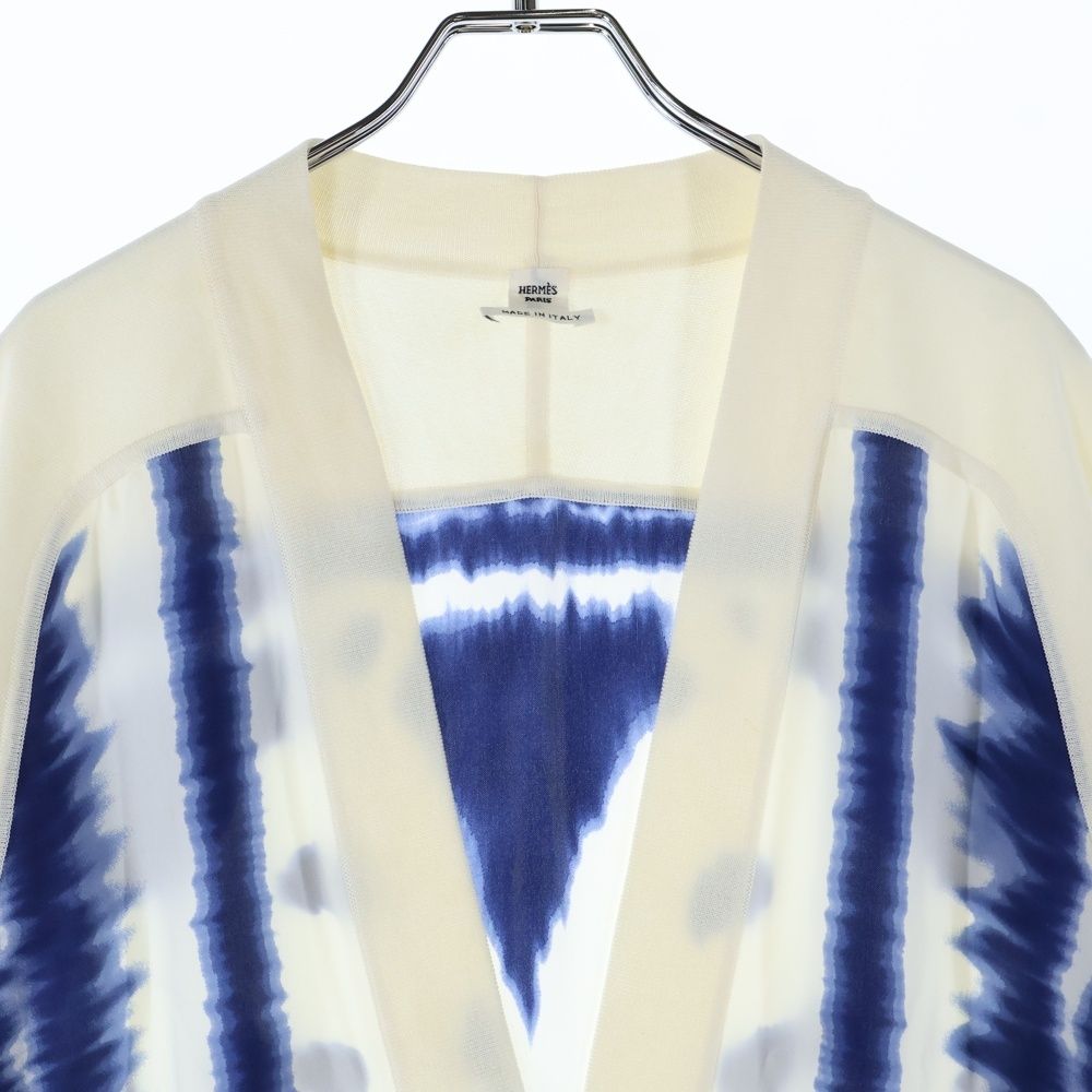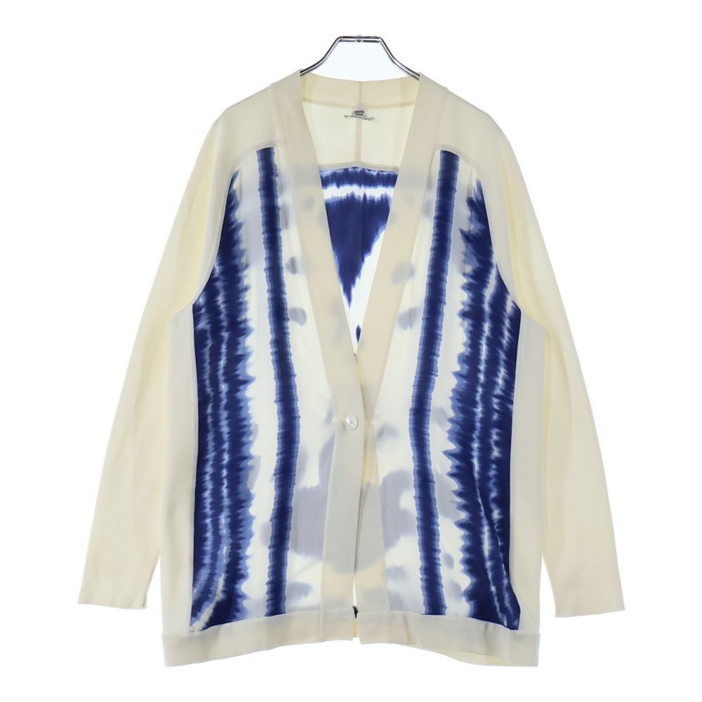 【品名】総柄プリント シルク スカーフ ニット切り替え カーディガン ホワイト/ブルー レディース