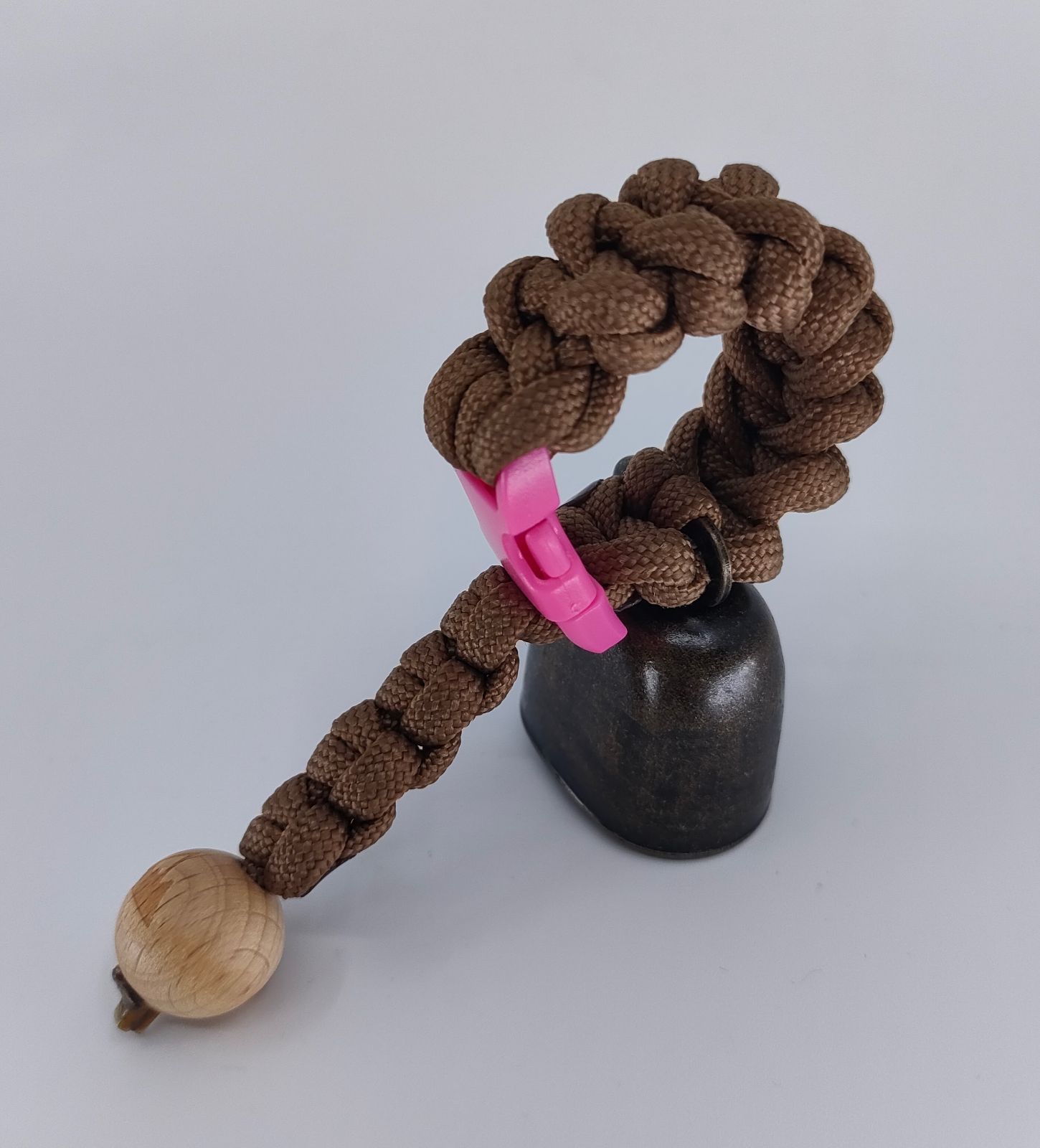 消音はウッドビーズをベルの中に入れ込むことで、強力なネオジム磁石が吊り鐘に吸い付いて行われます。クリック感があり手元を見ずにオン・オフをしっかり切り替えることが可能です。薄手ならグローブをしたままでもクリック感を感じらると思います。