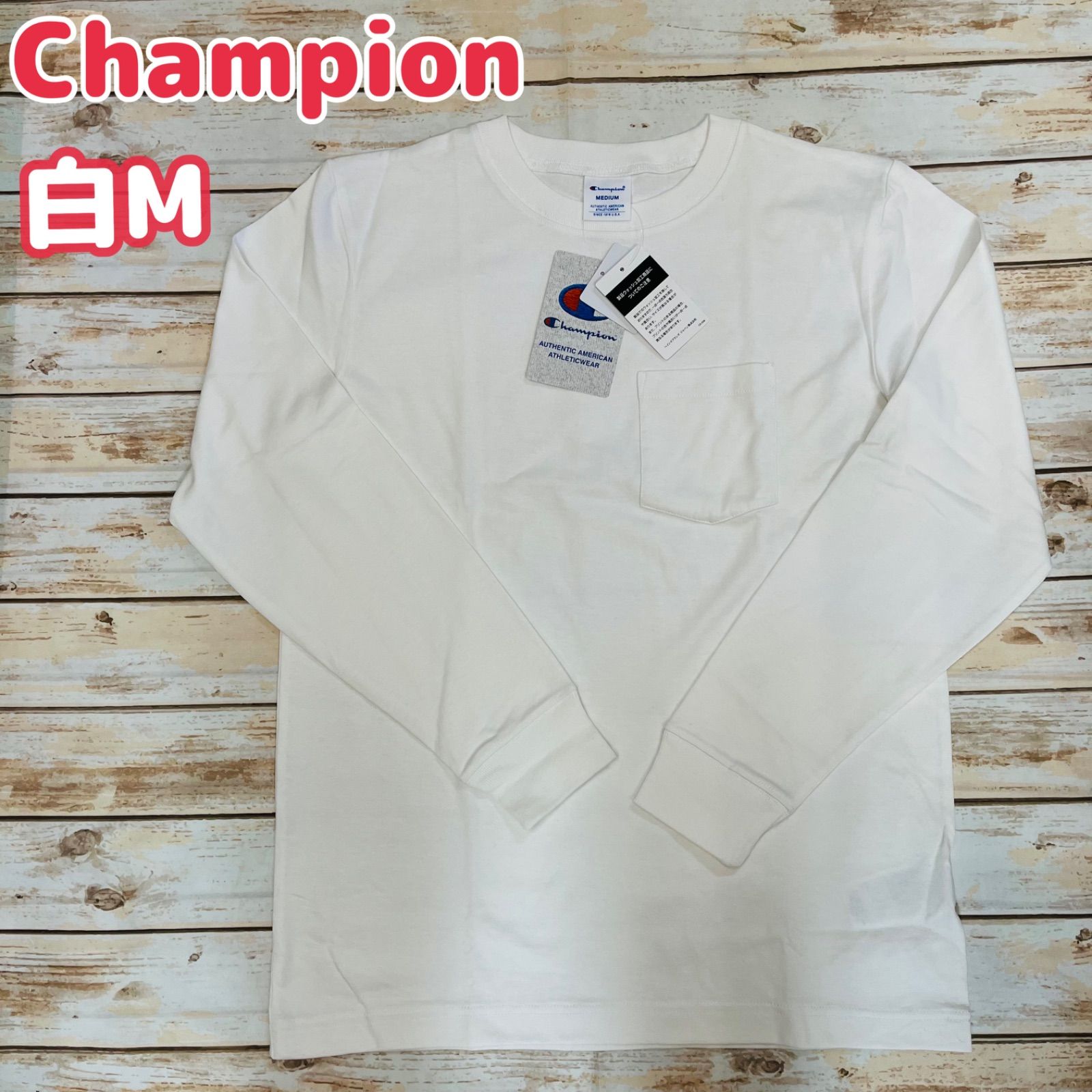 チャンピオン 長袖ポケットTシャツ 白 M 新品