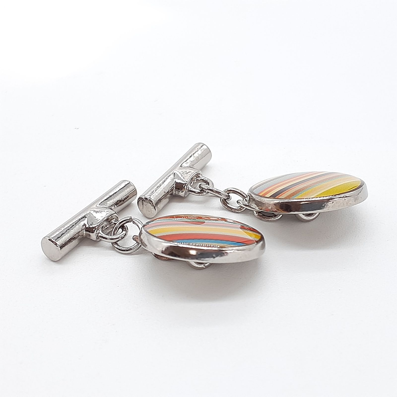 ★カラフルなシグネチャーストライプが印象的なポール・スミスのカフリンクス。遊び心と上品さを兼ね備えたデザインです。