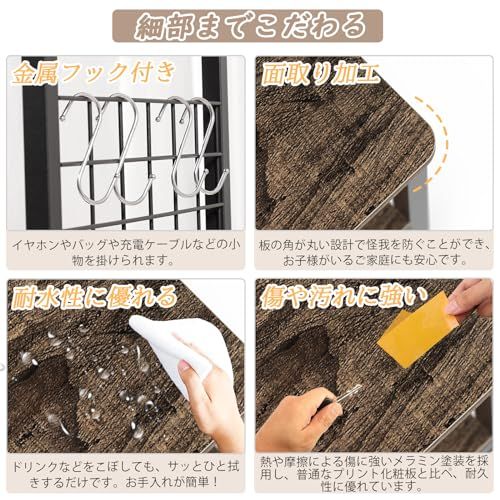 【堅牢な構造】棚板は厚さ1.5cmの頑丈なパーティクルボード、フレームは2cm*2cmのステンレススチールを採用し、天板の下に6本の補強パイプが付いて、重いものを載せても揺れにくく、安定性が抜群です。
