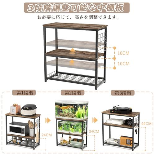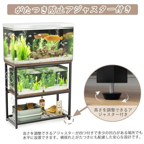 【高さ3段階調整可能な中棚】水槽スタンドの中棚の高さが3段階調節できて、用途に合わせて適当な高さを調整できます。
